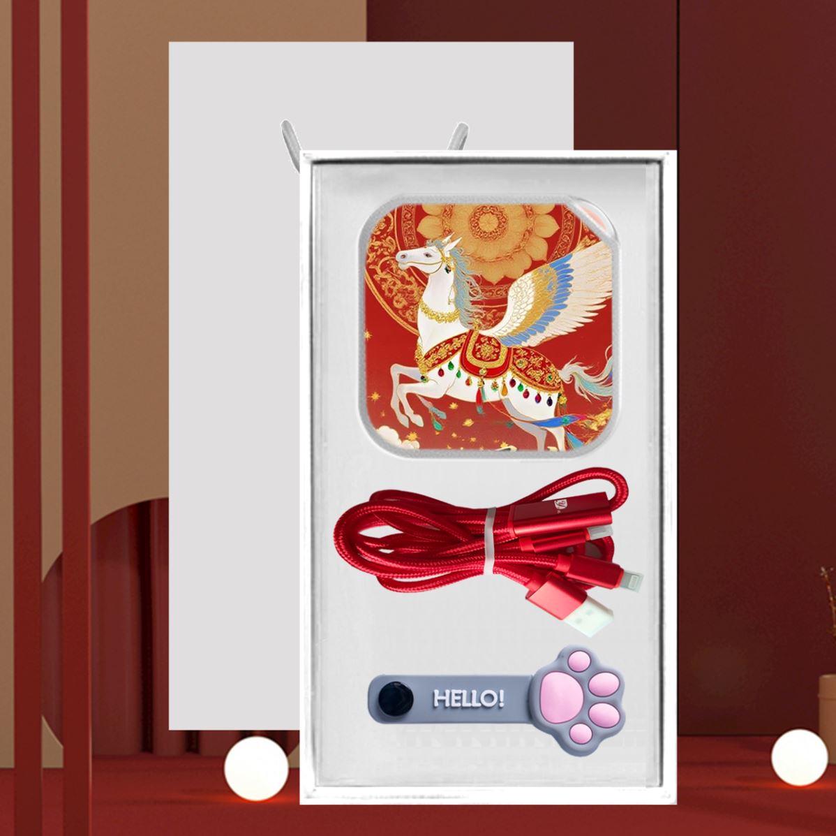 黛悦马年开门红移动套装DY-TN012充电宝数据线卡线器套装