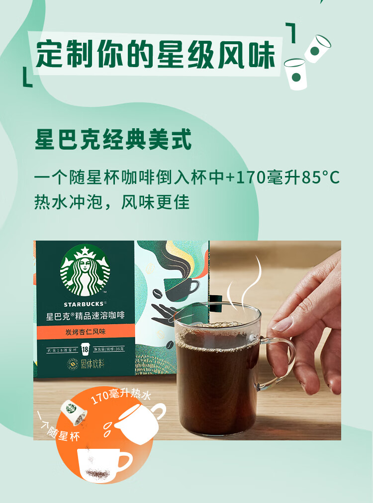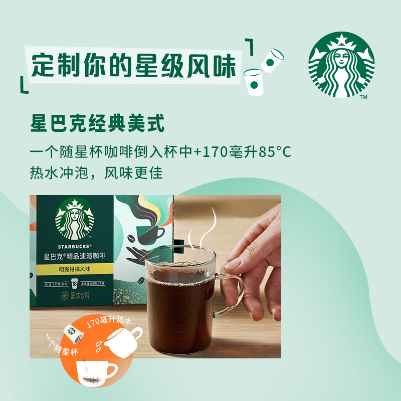 星巴克随星杯2.0系列明亮柑橘风味2g*18颗精品冻干黑咖啡