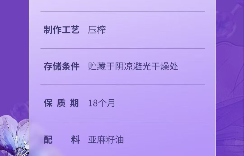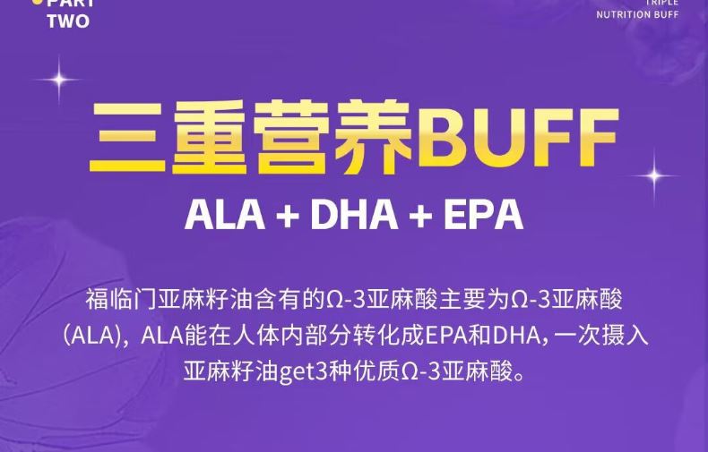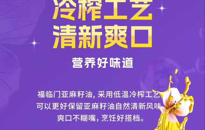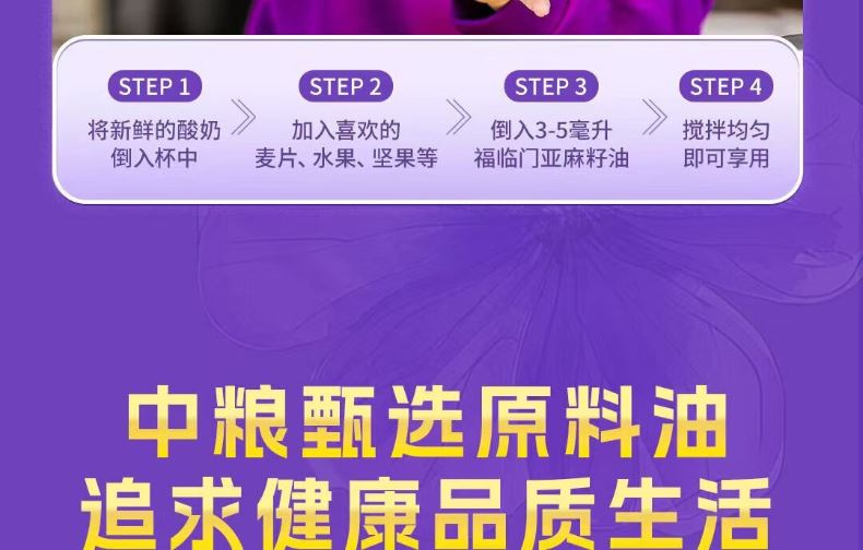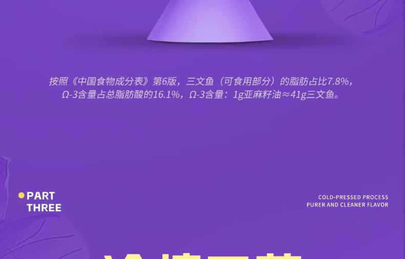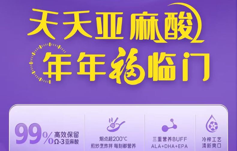 央企品质 + 高 Ω-3 营养:中粮全产业链管控,优选核心产区亚麻籽,α- 亚麻酸含量超 50%,守护心脑健康,营养更安心。