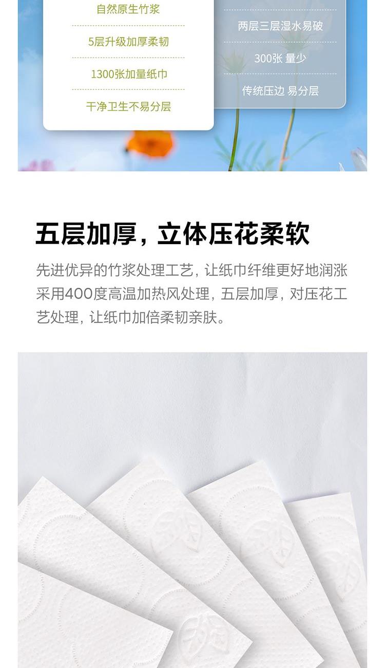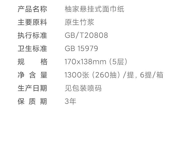 产品型号:533773 绿色 产品规格:170*138mm/张,5层加厚,260抽/提 产品重量:0.4kg左右 主要原料:原生竹浆 产品保质期:3年