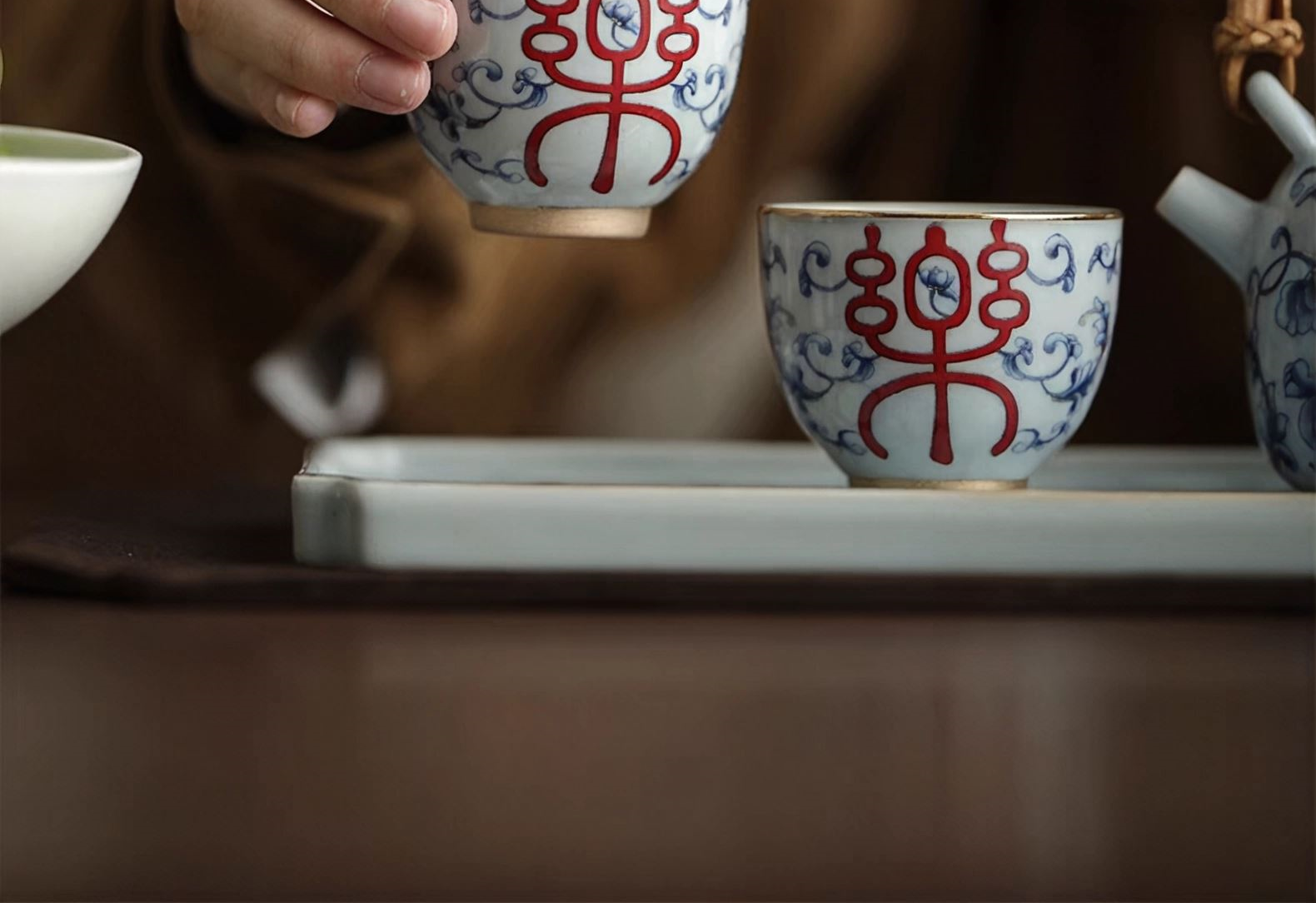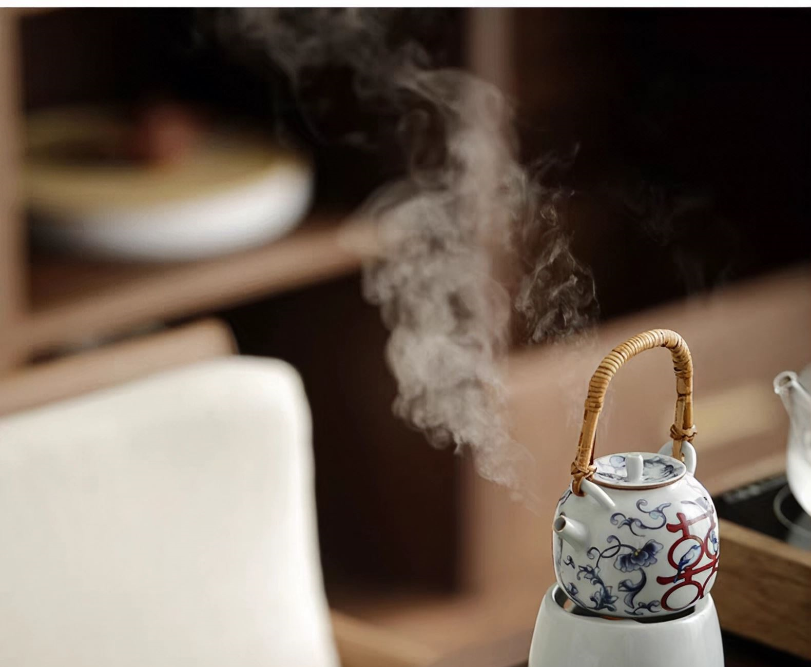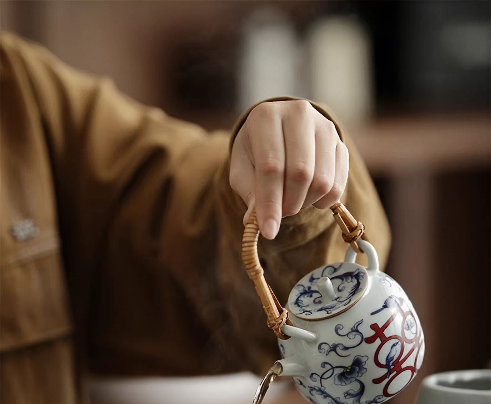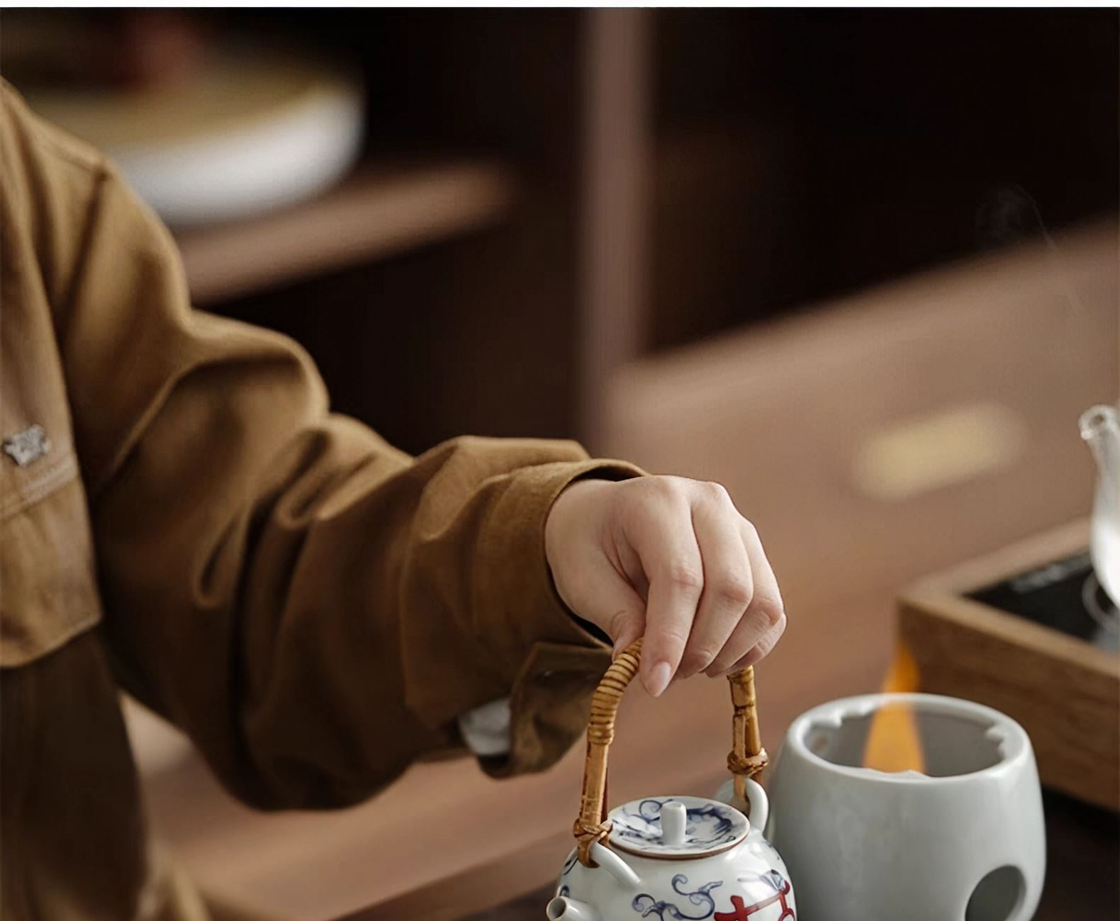 尾桥下窑复古烧青花喜乐陶瓷煮茶壶茶具套装婚庆婚庆节日礼品