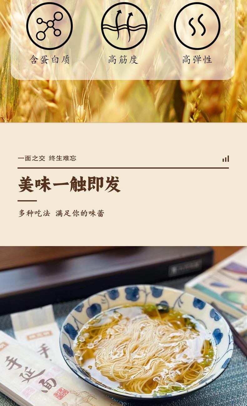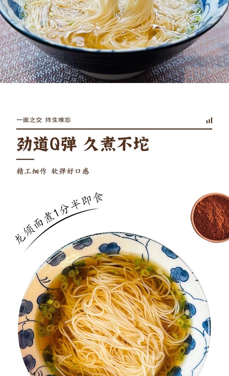 产品规格: 龙须1mm 150g*4包 共600g 1、二十道古法,六醒六抻更弹韧; 2、多熟成慢发酵,入味易熟好吸收 3、甄选进口澳麦麦源,口感弹韧,丝滑如稠 4、科学加持传统工艺,严格质控,美味安心享用