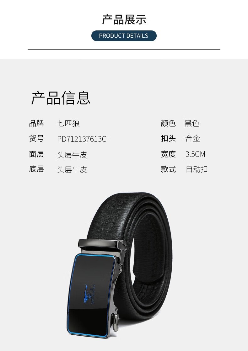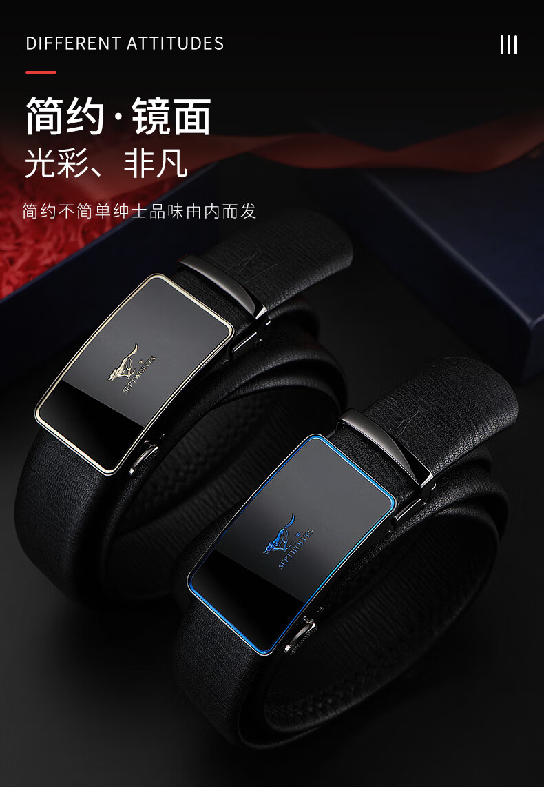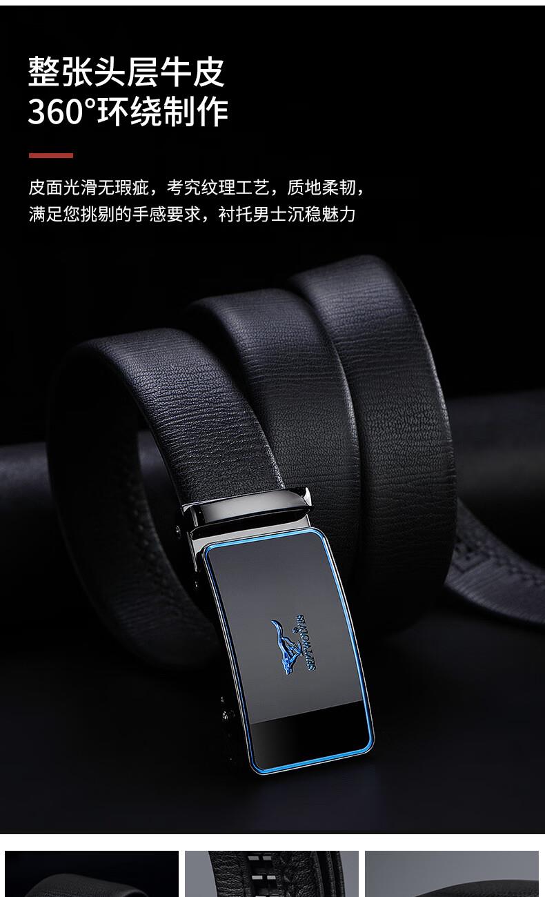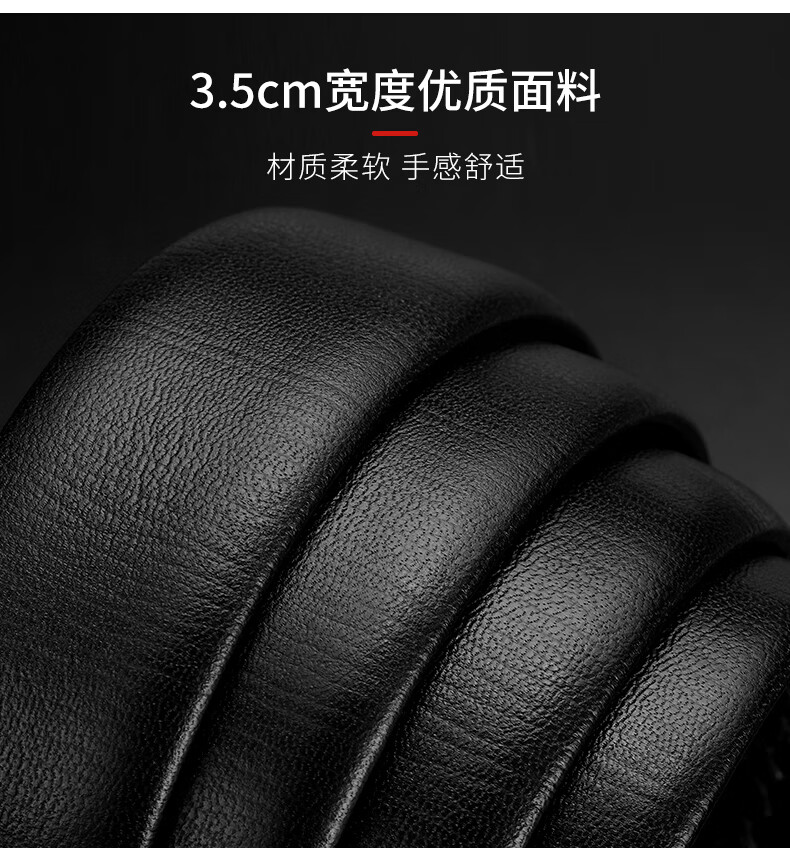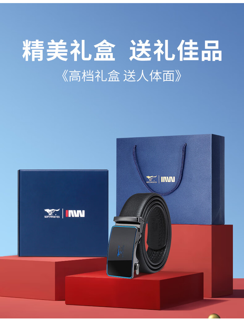 工艺:光面 带扣:自动扣 主体材质:头层牛皮 带扣材质:合金 风格:通勤风 商务风 宽度:3.5CM 送爱人,送长辈,送男士 时尚设计扣头,经典个性,简约百搭,磨砂背扣,材质柔软,手感舒适,经典狼标LOGO 代写贺卡,传递心声,精美礼盒,送礼佳品