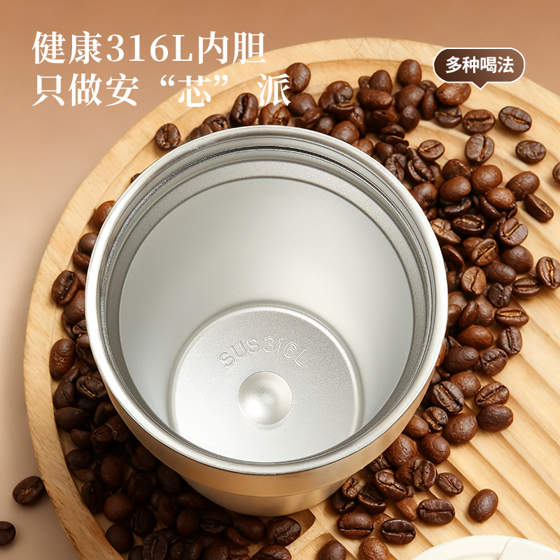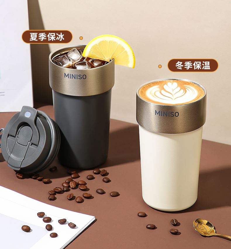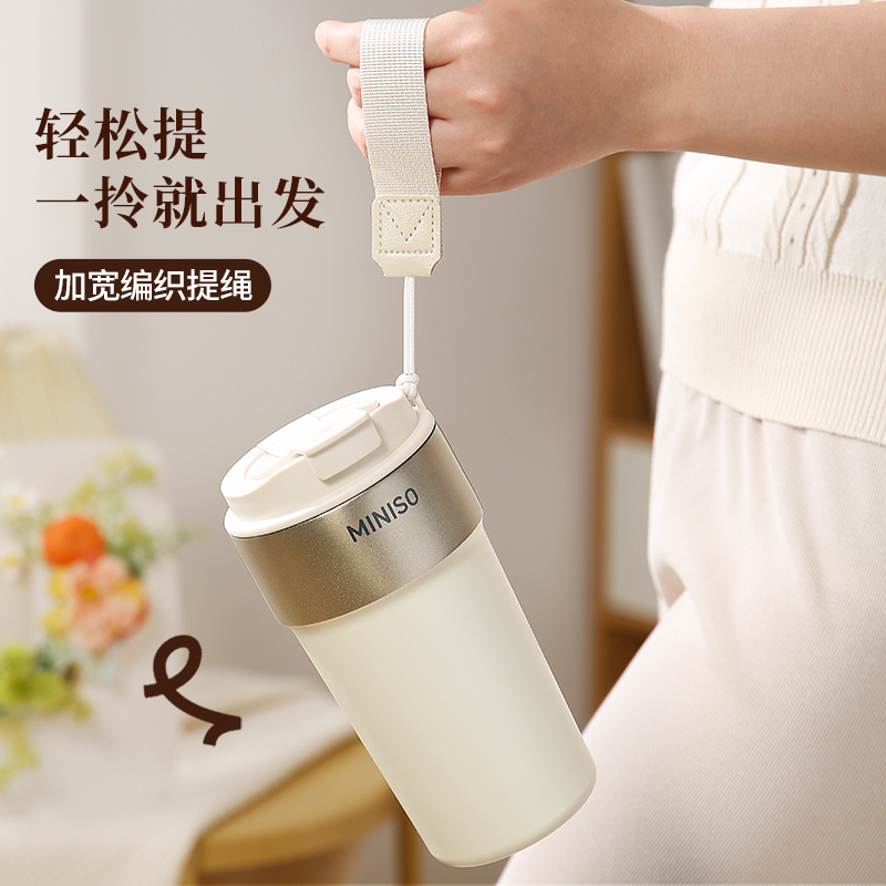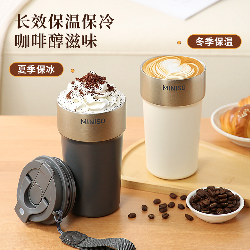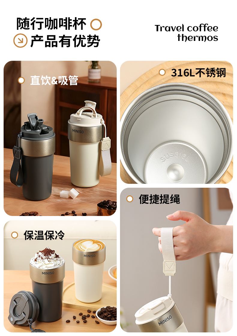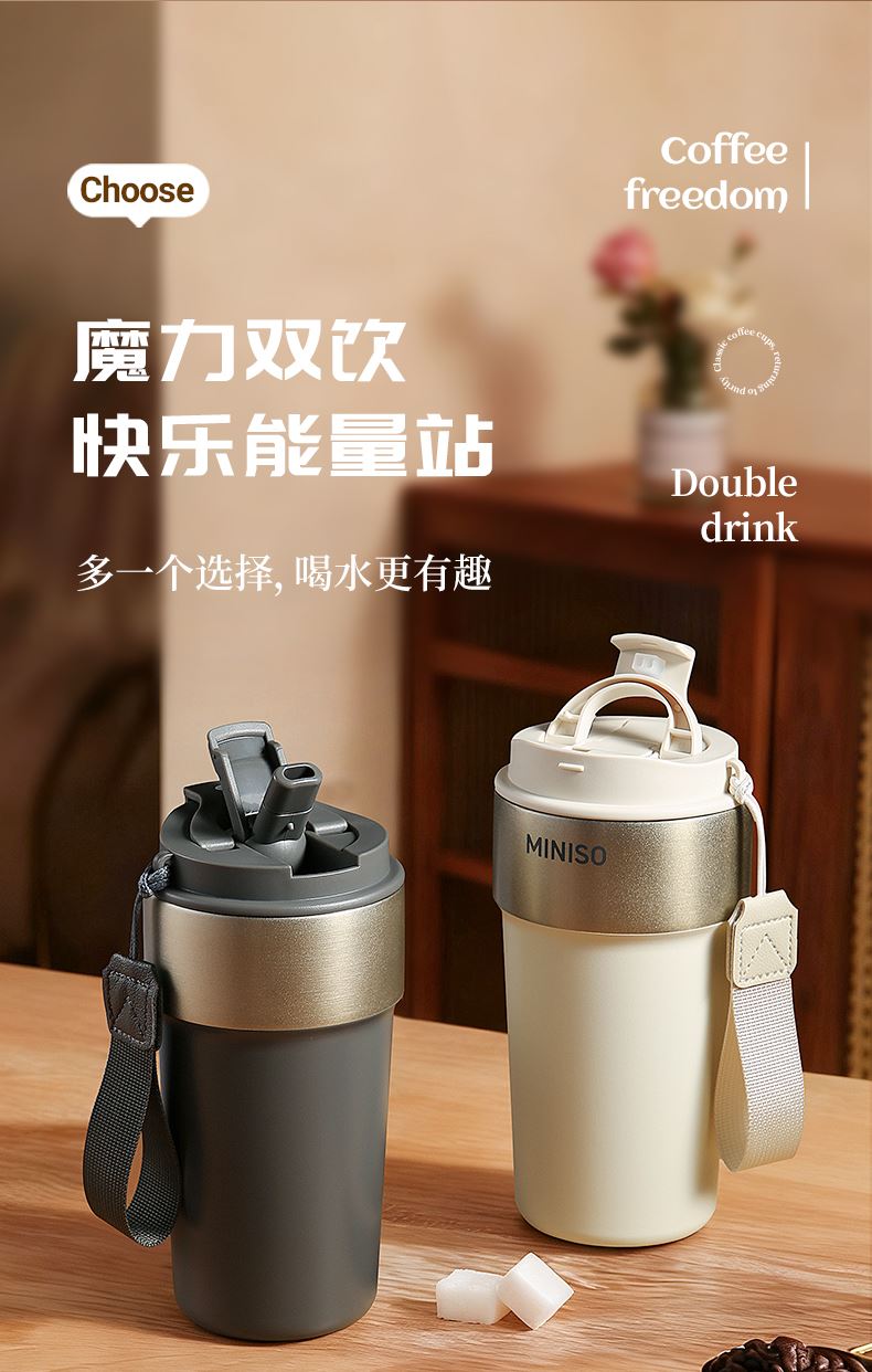 名创优品316L不锈钢咖啡杯高颜值便携吸管杯520ml
