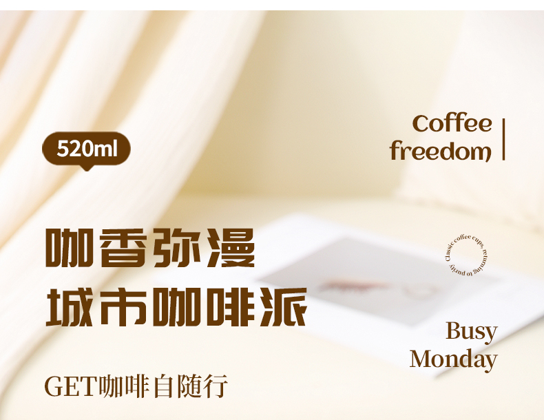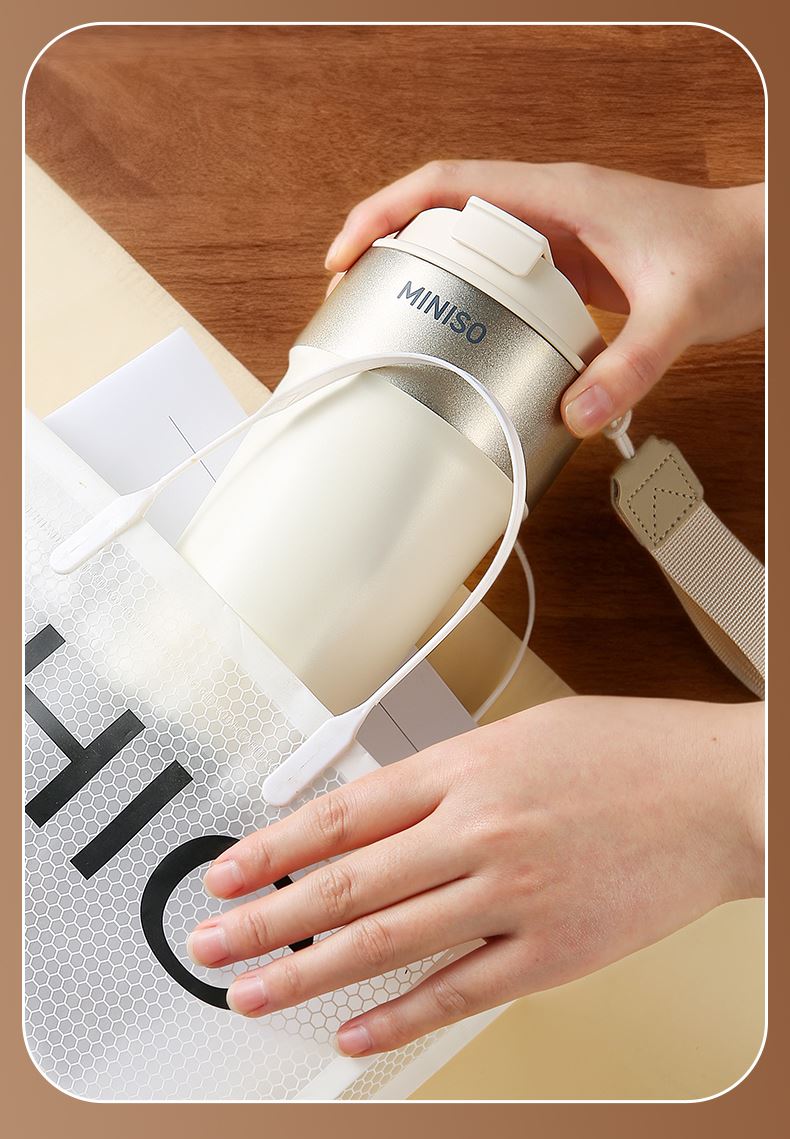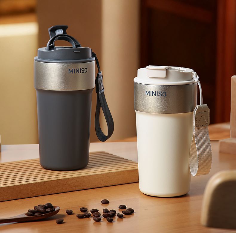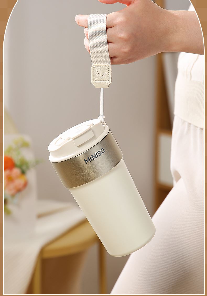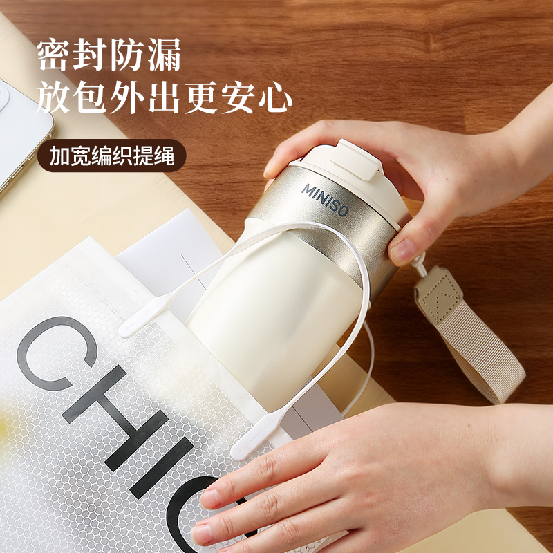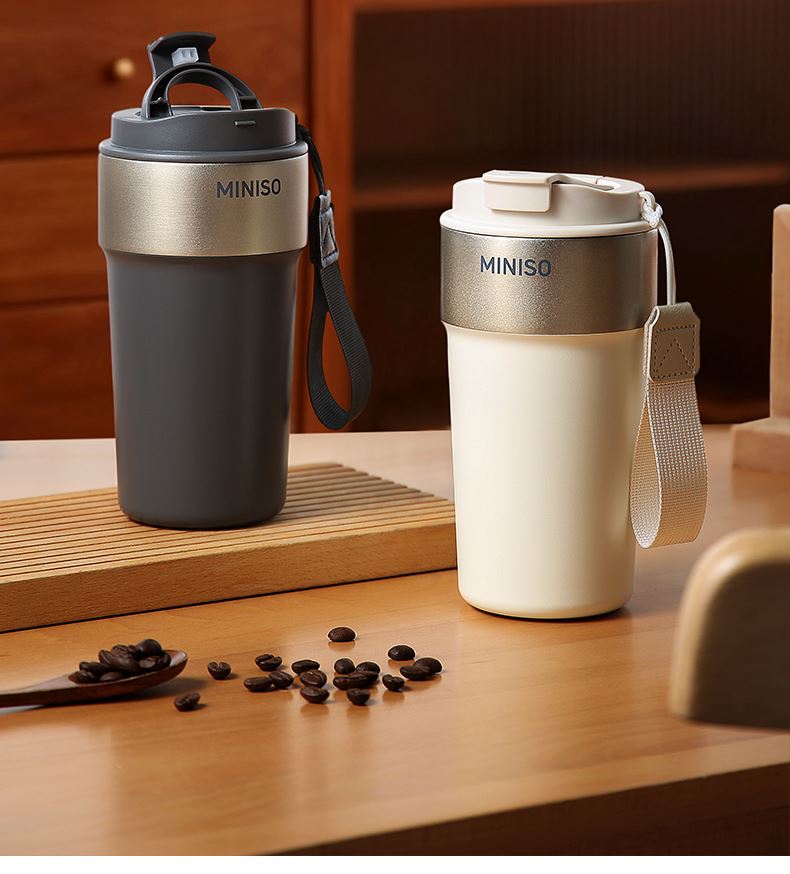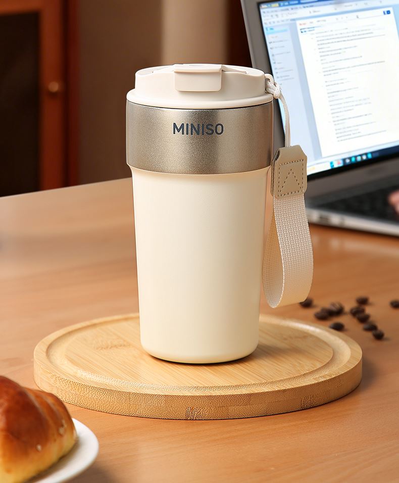名创优品316L不锈钢咖啡杯高颜值便携吸管杯520ml