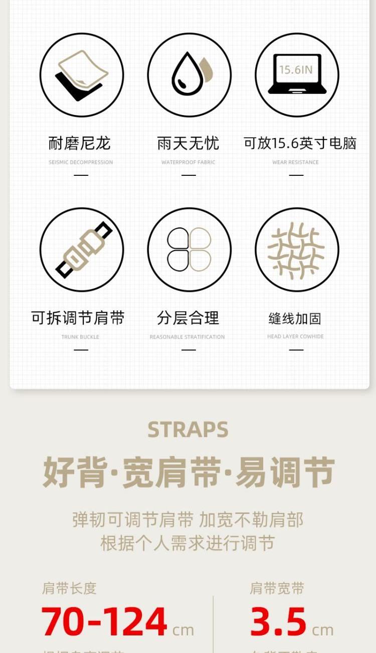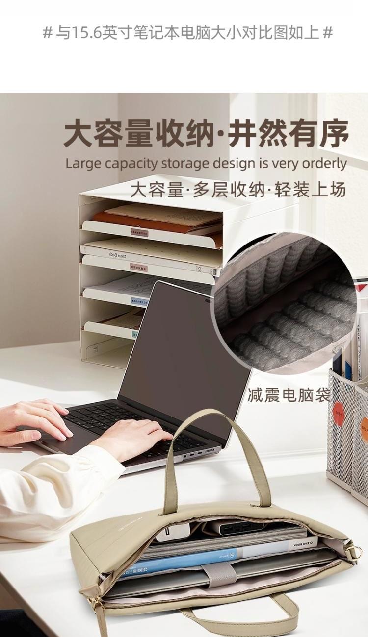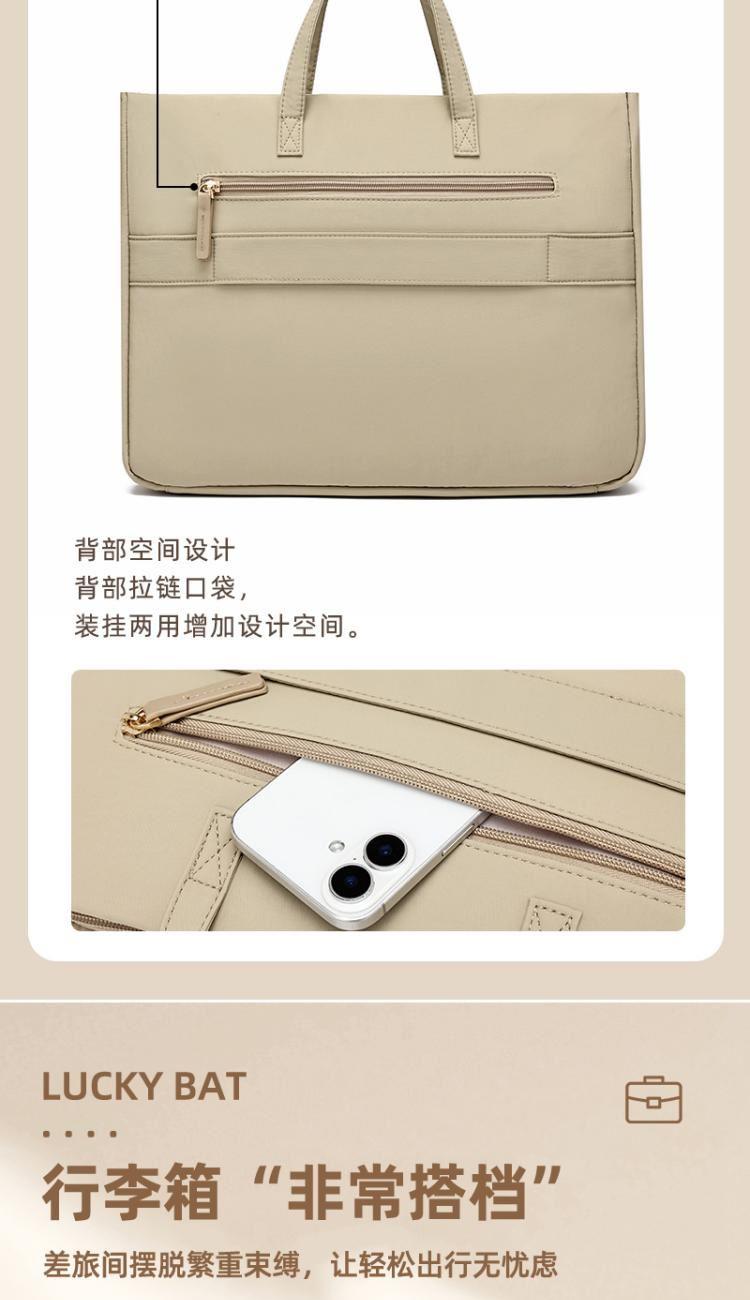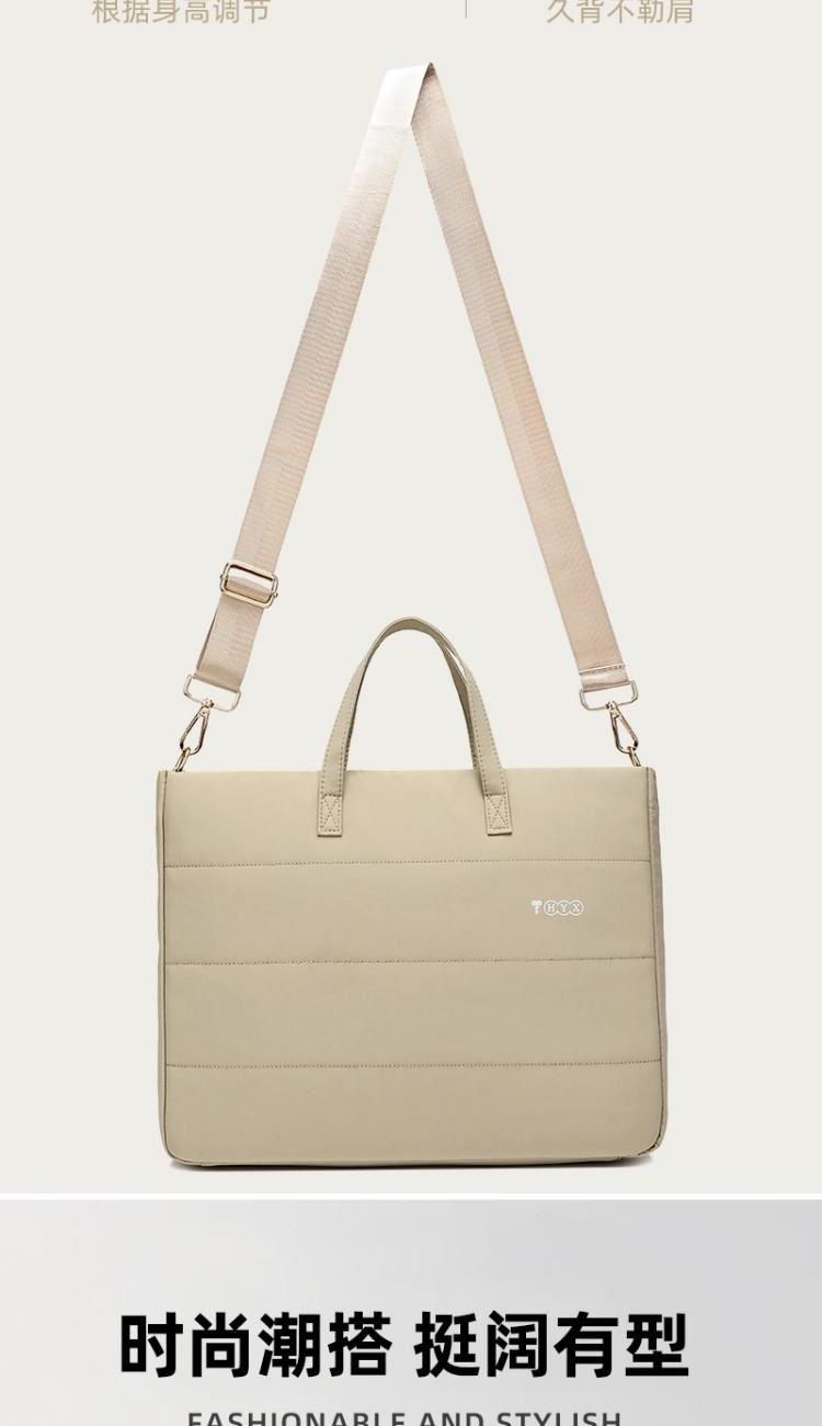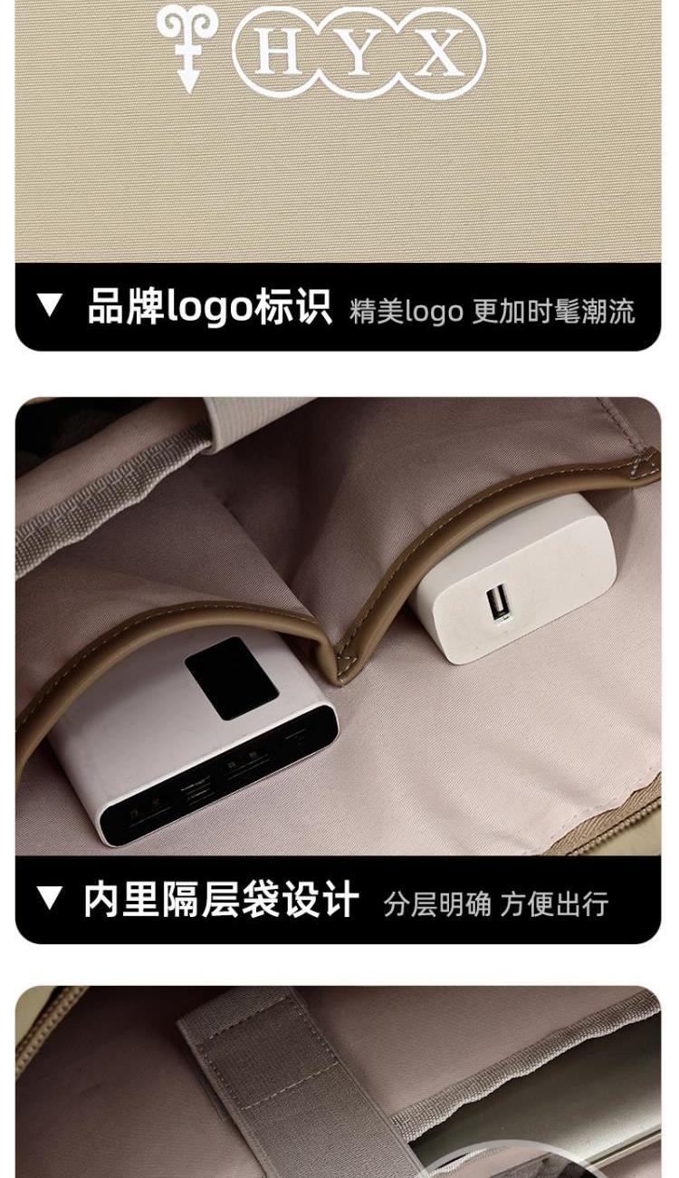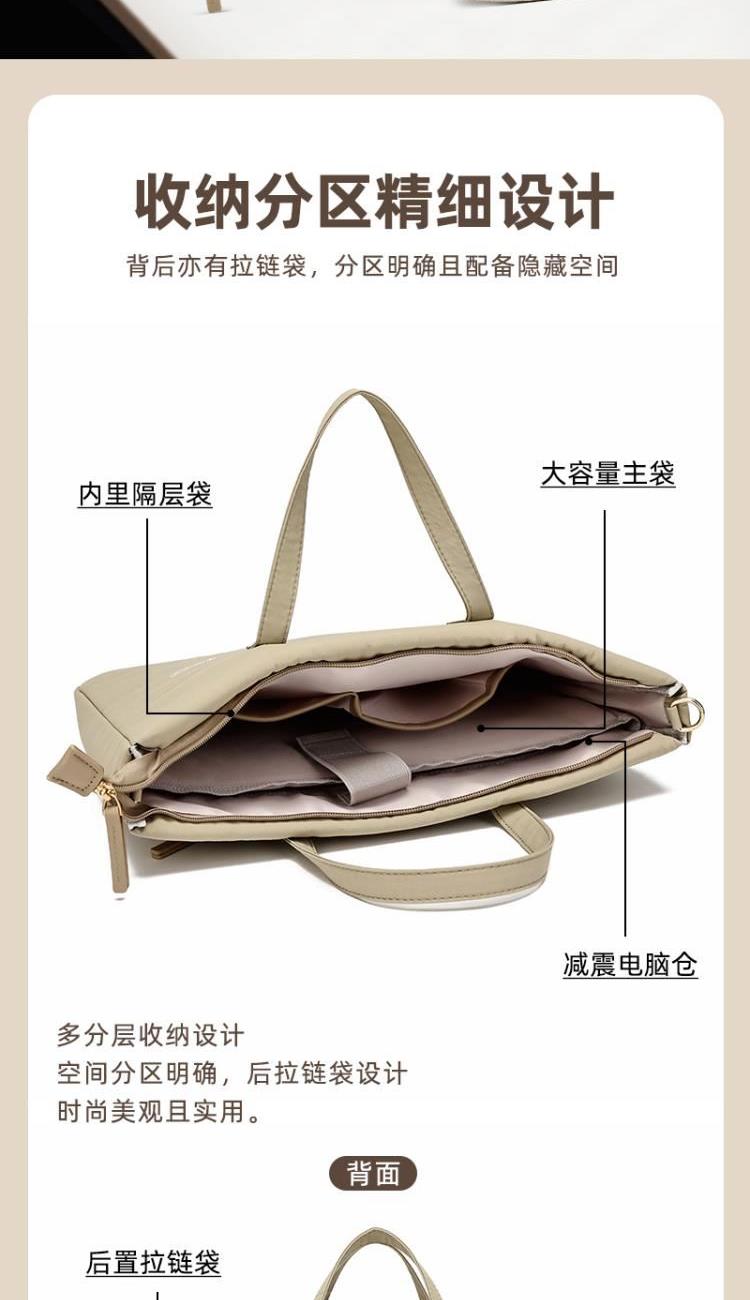 产品型号:HYX0668 产品重量:0.33kg 产品规格:40*8*30cm 产品颜色:卡其、浅绿 产品卖点:优选欧美出口畅销防水尼龙材质,时尚、结实; 大容量手提包,兼顾商务,设有独立防震抗摔14英寸电脑仓; 人性化拉杆织带设计,插在拉杆箱上,旅行更方便。 可拆卸单肩背背带,可提可背,双重场景切换。