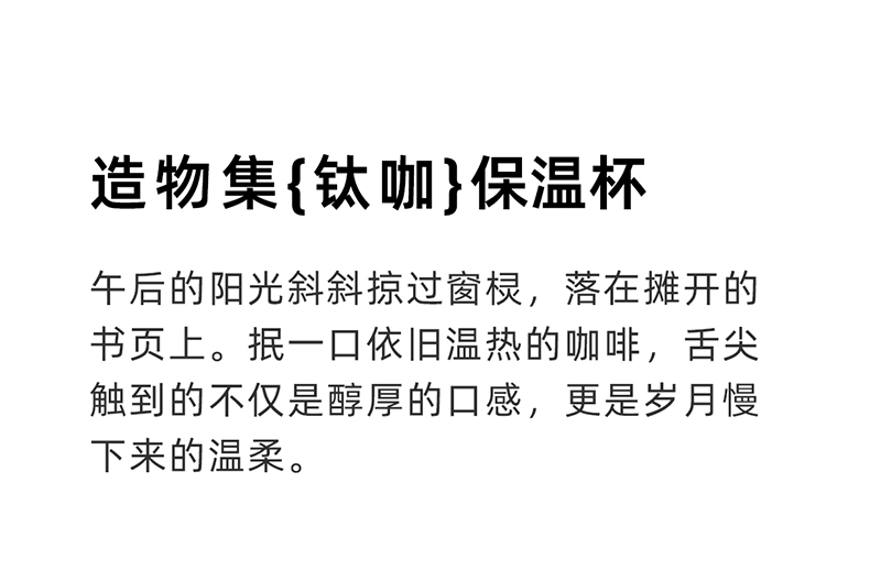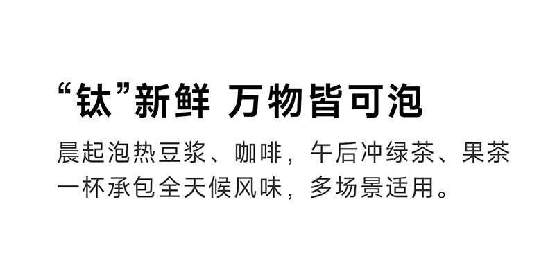 容量:500ml | 净重:350g | 口径:83mm 材质:纯钛(内胆、外壳) PP(杯盖) 产品尺寸:92mm*92mm*196mm 礼盒尺寸:131mm*240mm*105mm 执行标准:QB/T 5612-2021