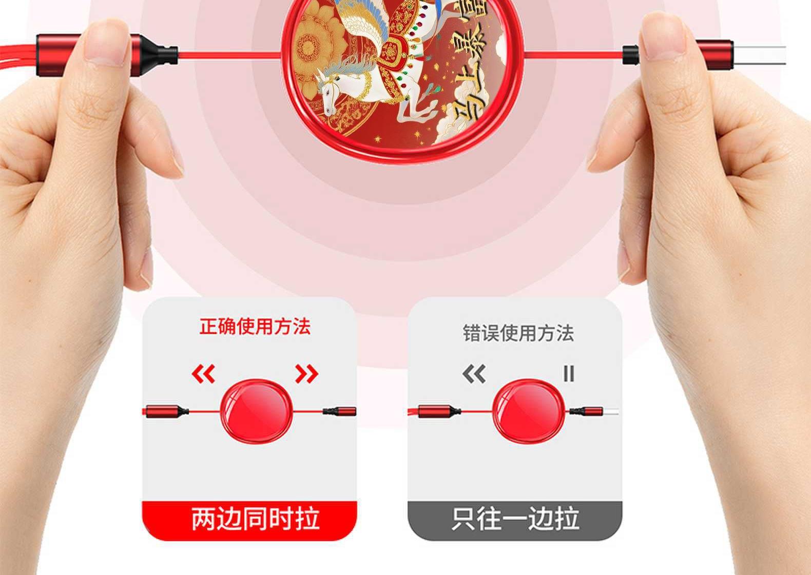 黛悦马年开门红100W超级快充伸缩数据线DY255现货秒发
