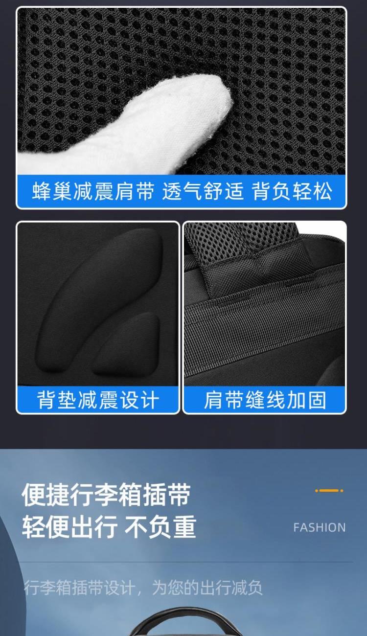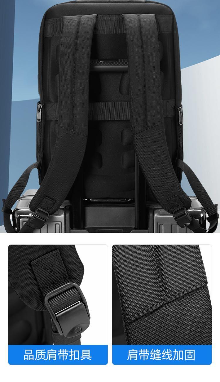 背部EVA一体热压防震透气背负系统,同步配有拉杆便携织带。