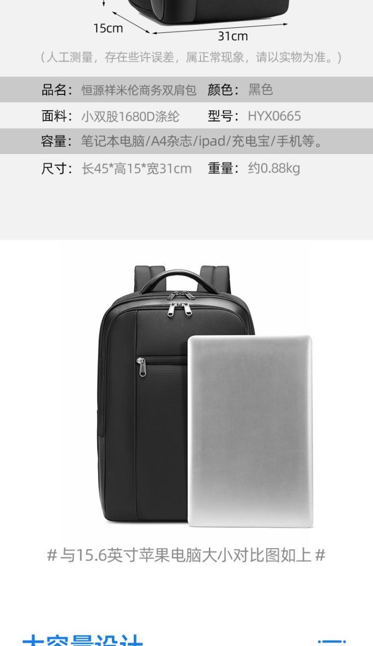 恒源祥米伦商务双肩包HYX0665黑色