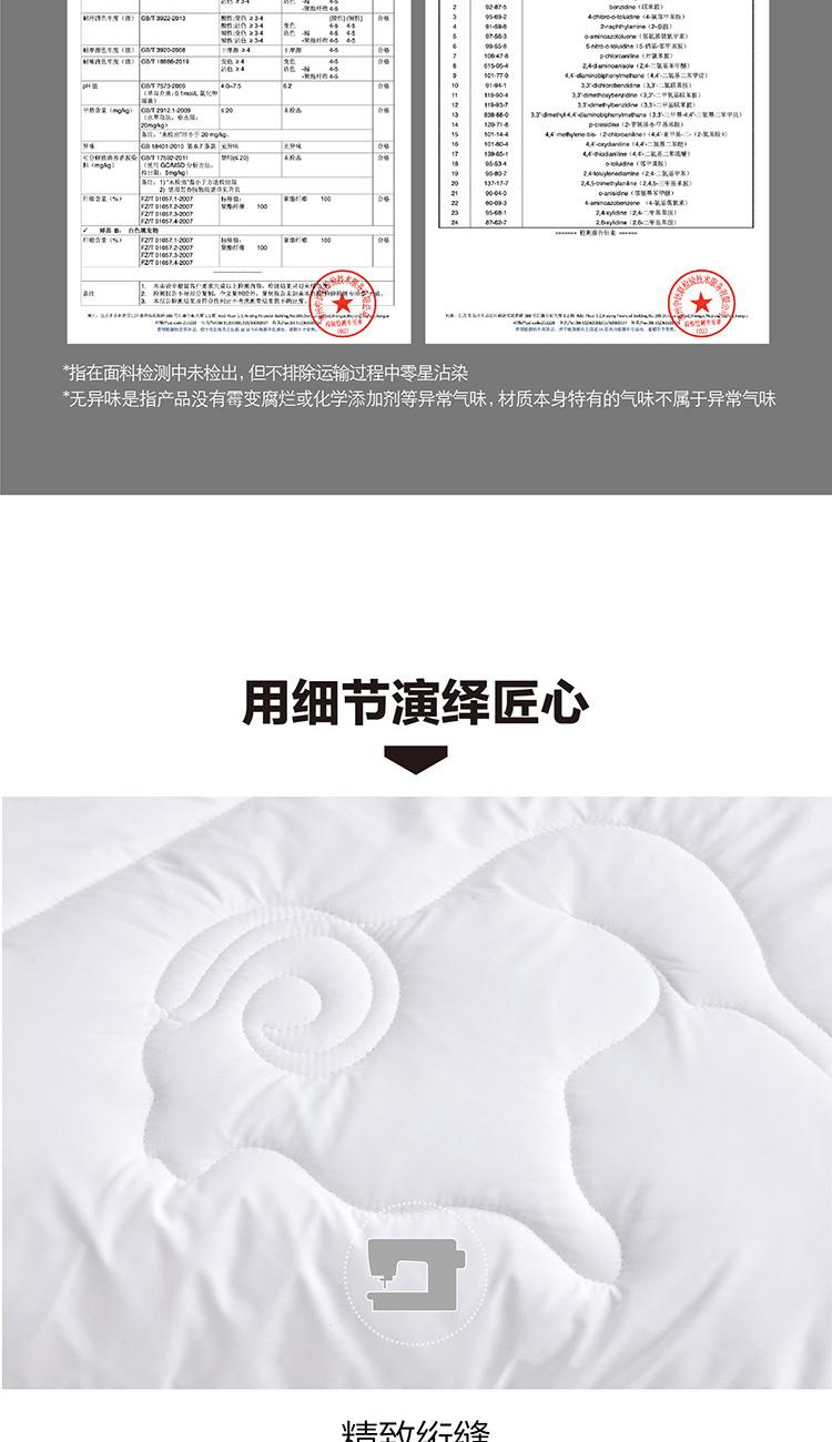 填充物精选澳大利亚羊毛填充,毛质柔软细腻,吸湿能力强,恒温保暖,天然回弹性佳带来舒柔温暖的睡眠体验!