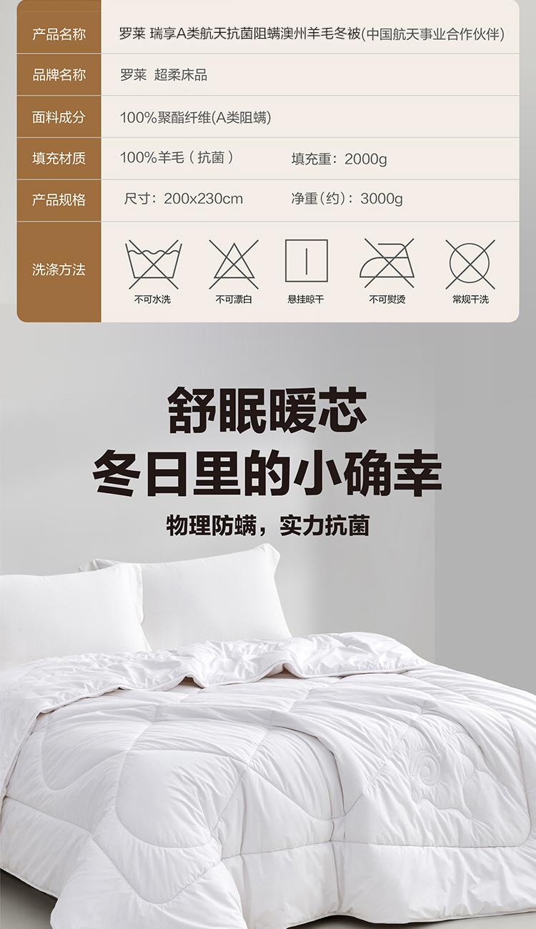 罗莱瑞享A类航天阻螨澳州羊毛冬被200*230cm