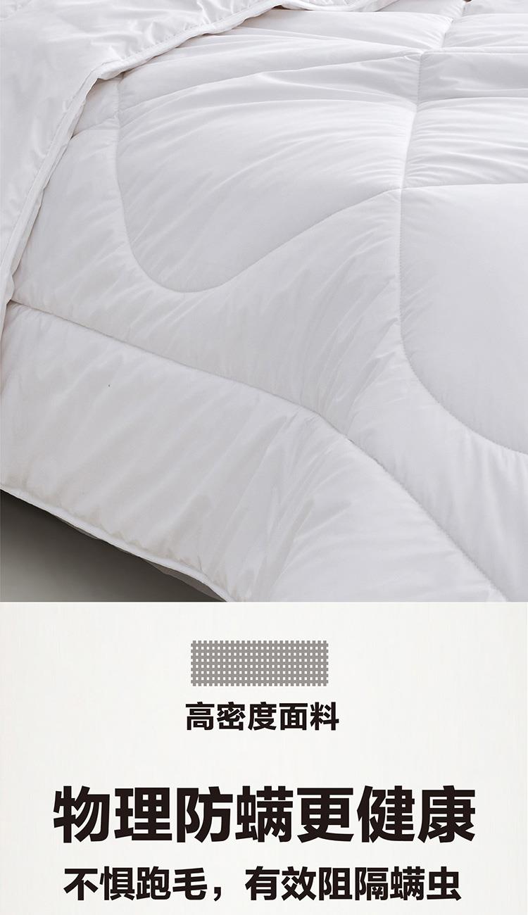 采用高密度磨毛防羽面料,微米级物理防螨,柔暖顺滑,大大降低被子的摩擦声,防止羊毛从缝隙间钻出,享洁净睡眠;布面光滑不钻毛,精美绗缝,美观大方手感柔软,贴身舒适;