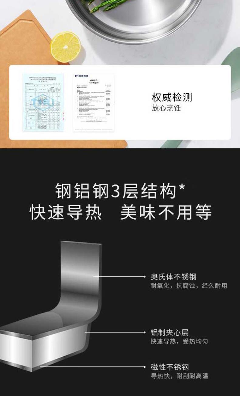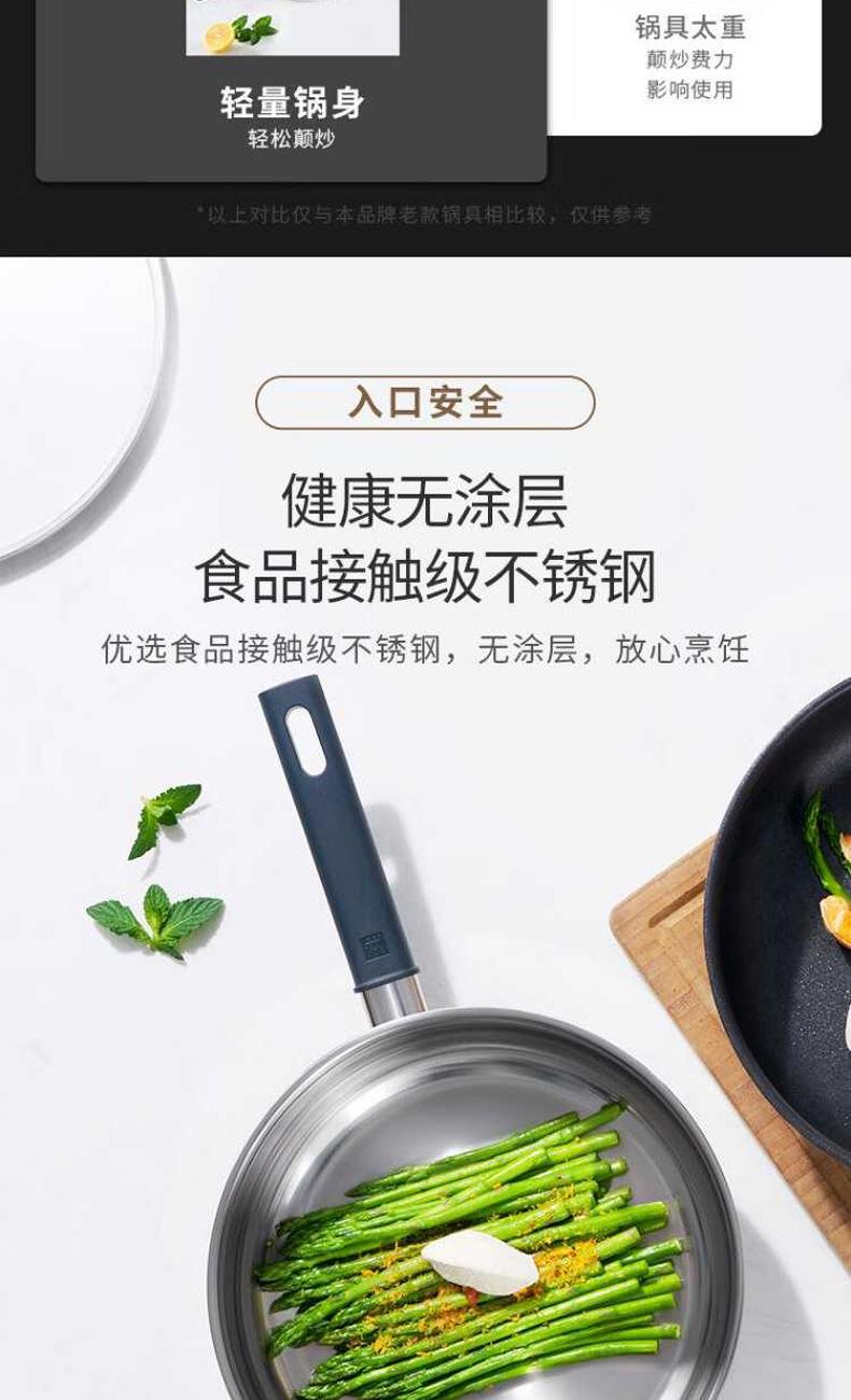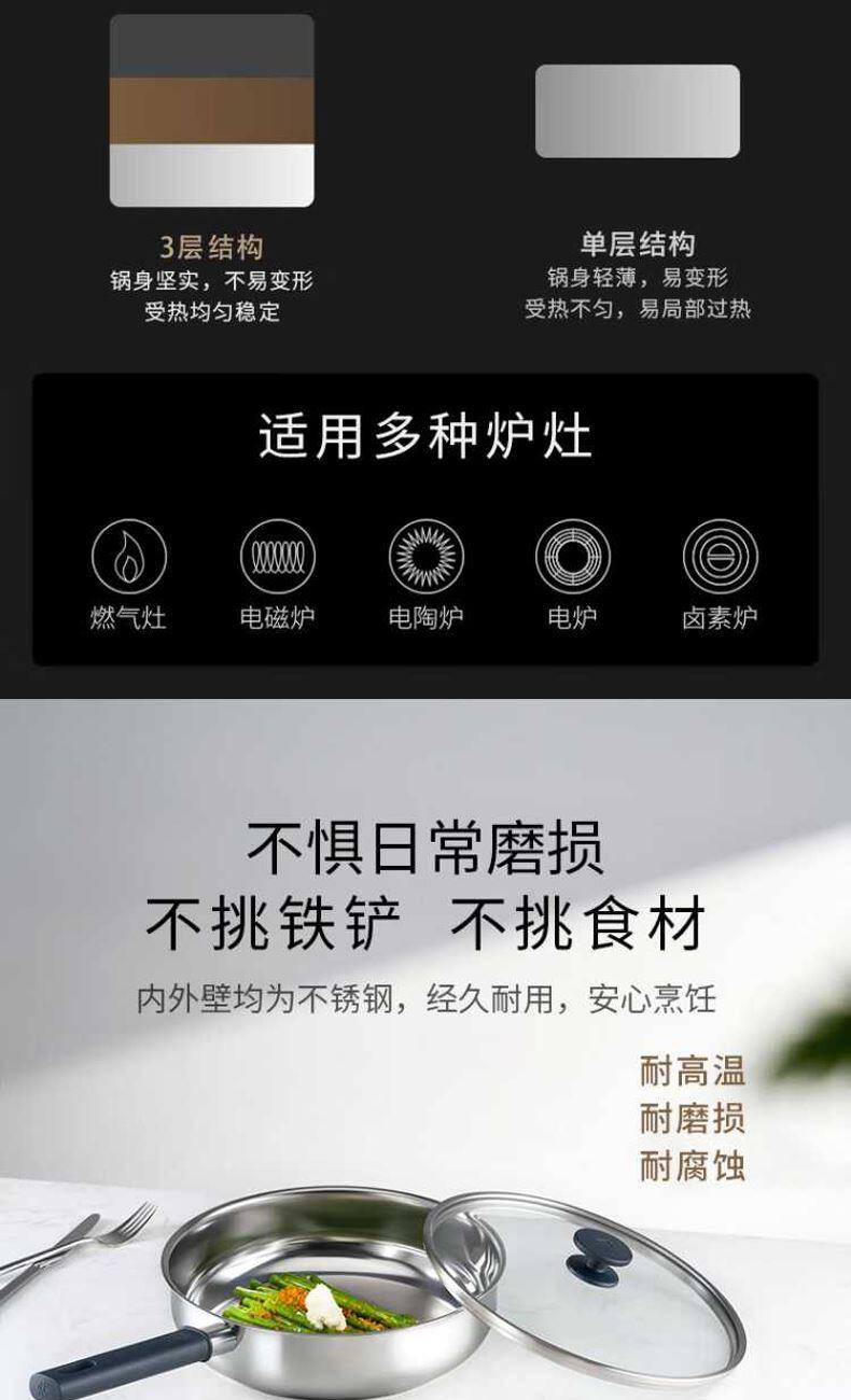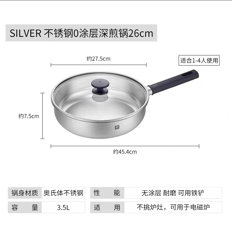 深煎锅:优选食品级304不锈钢材质“无涂层”深煎锅,健康煎炒,持久好用,26cm尺寸适中,匹配常规家庭日常所需