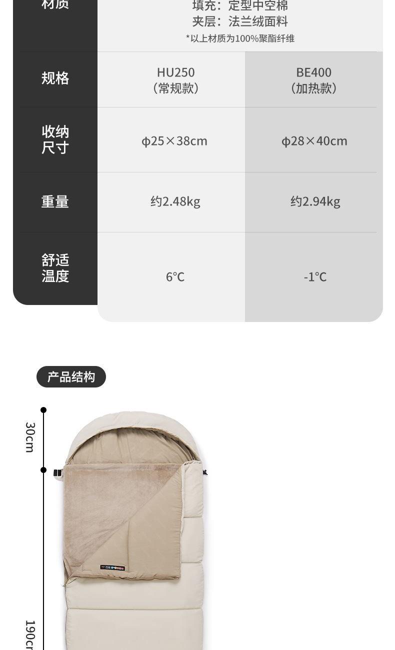 Naturehike挪客日暄信封带帽增温棉睡袋