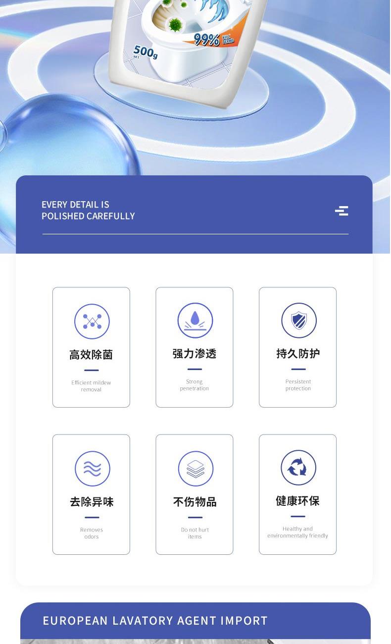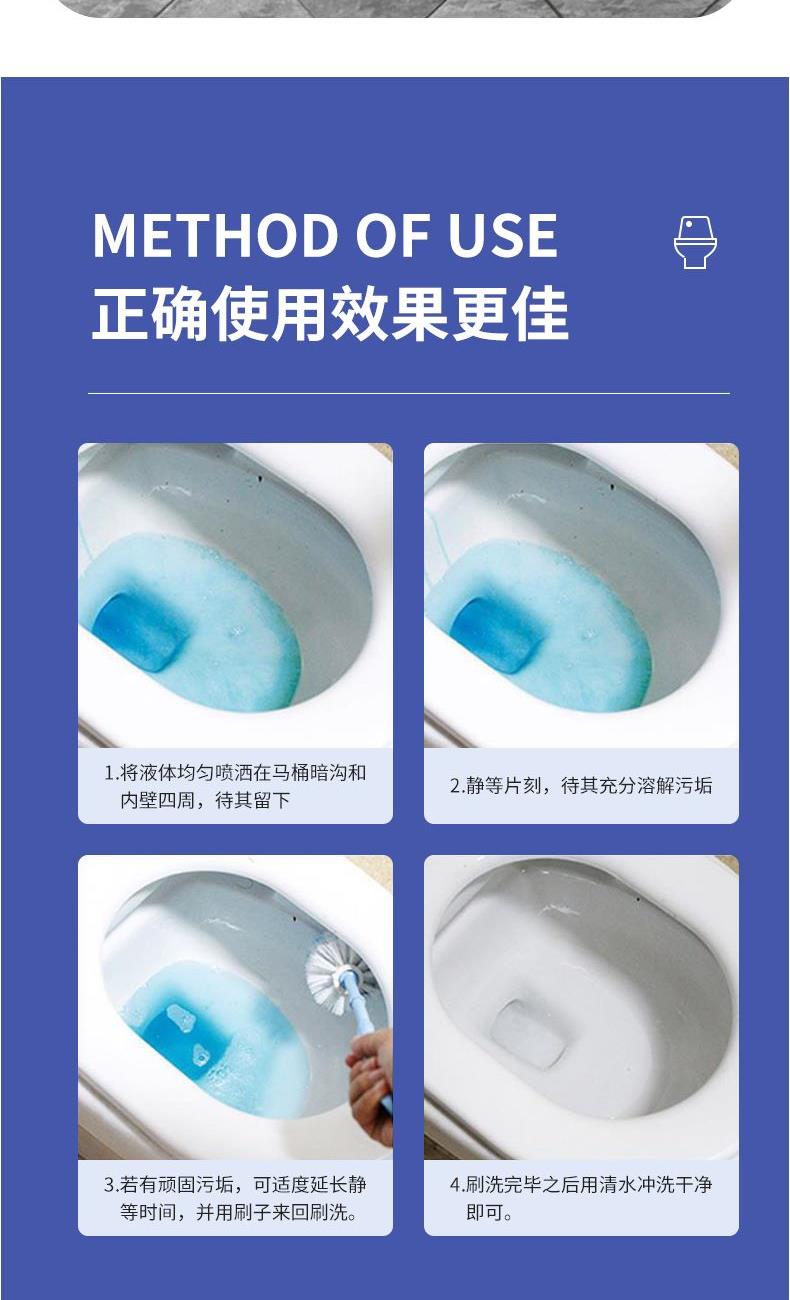 强效去污+去味清新 气味更温和:升级配方,味道温和不刺激。 瓦解污垢:浓稠质地,持久挂壁与污垢充分作用,有效除垢且不伤表面。 去味清新:有效去除异味,保持清新。