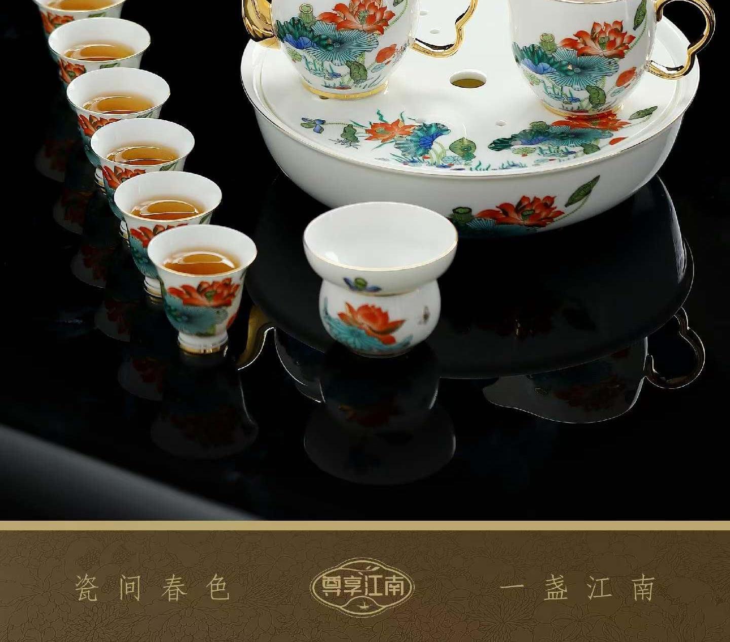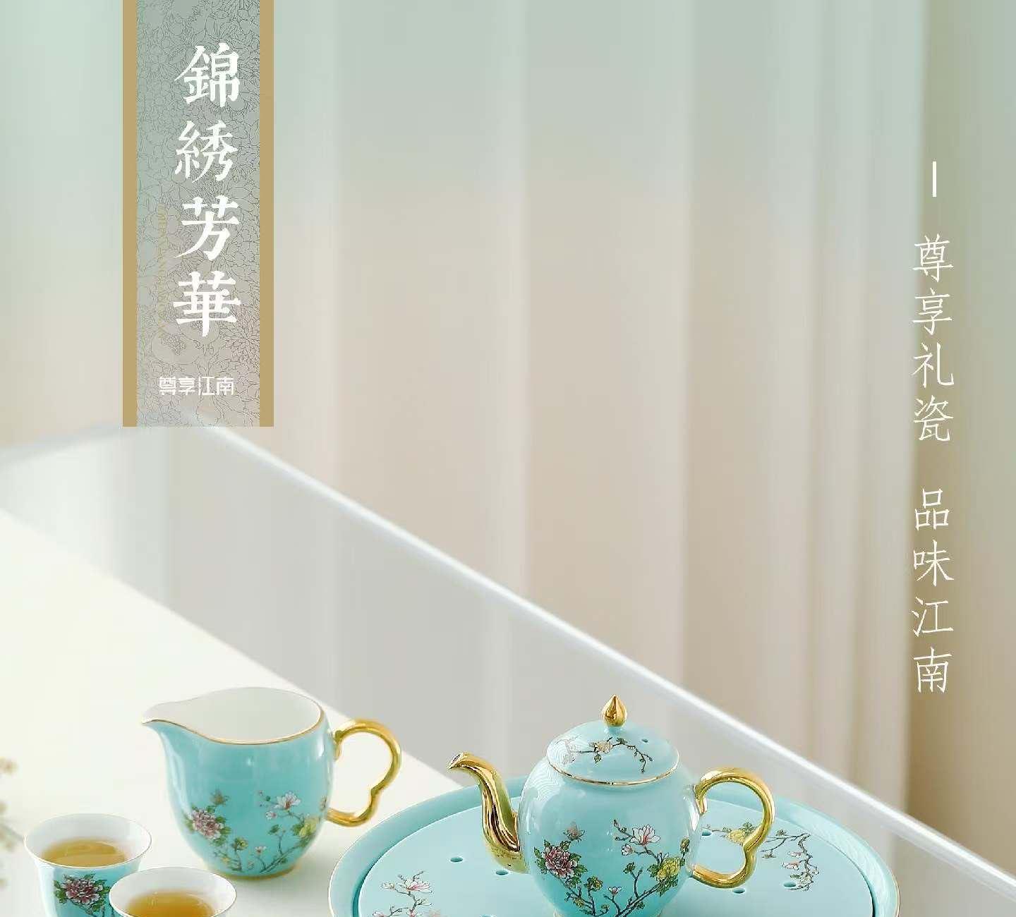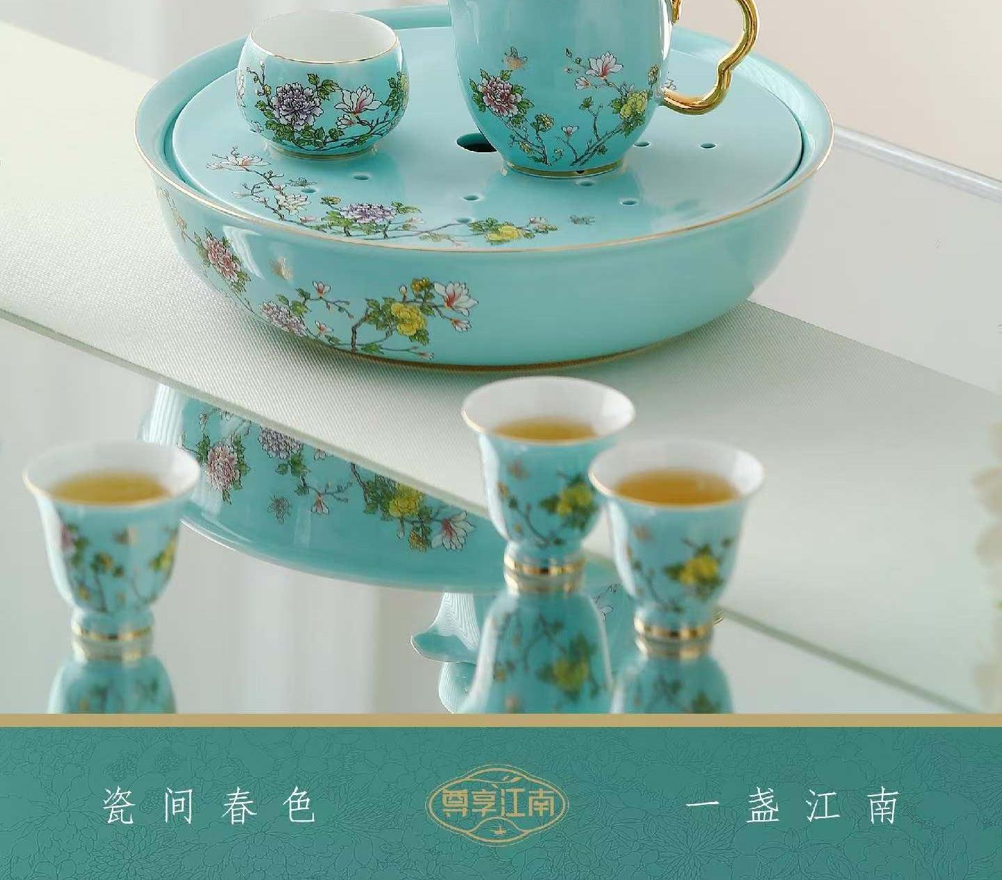 尾桥下窑尊享江南系列带茶盘陶瓷功夫茶具套装商务会议新年伴手礼