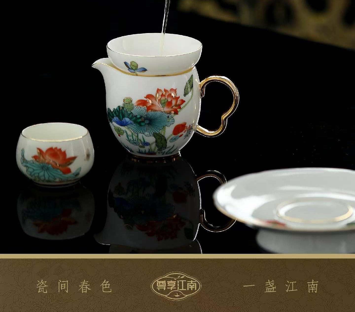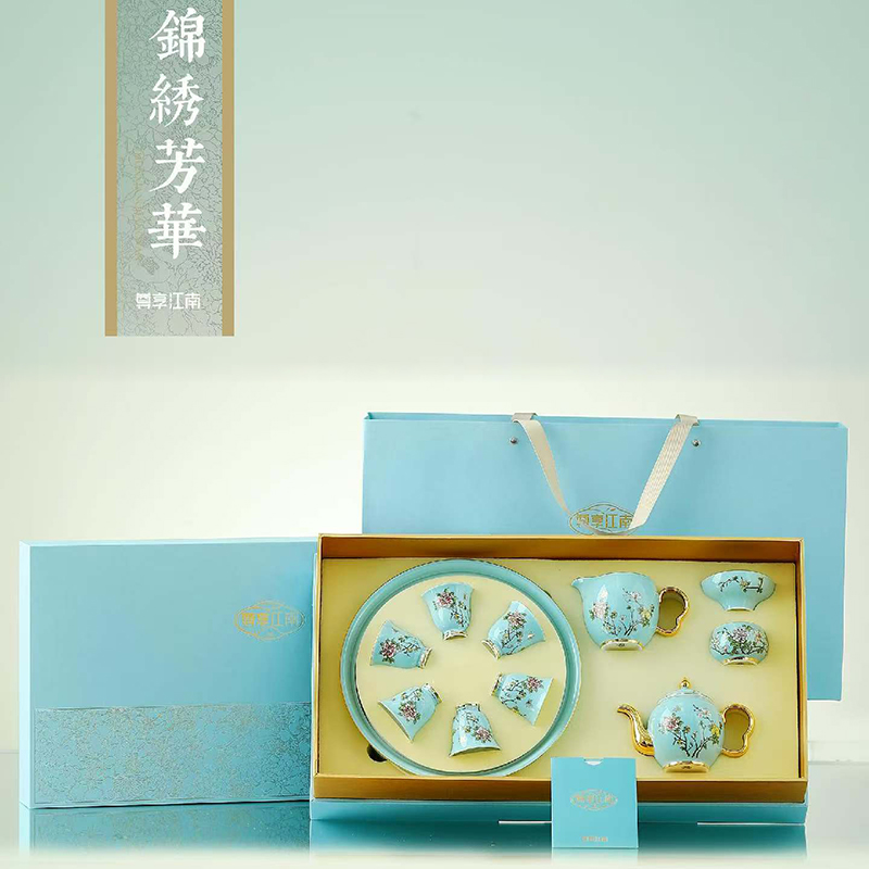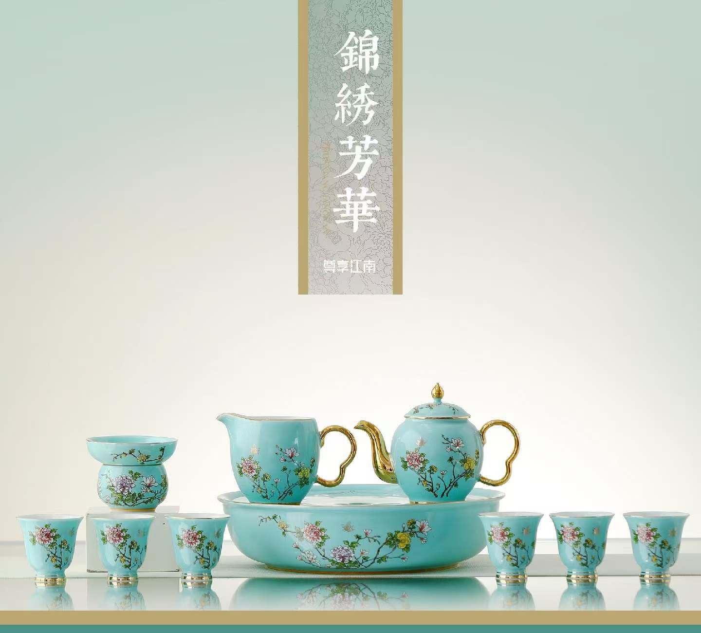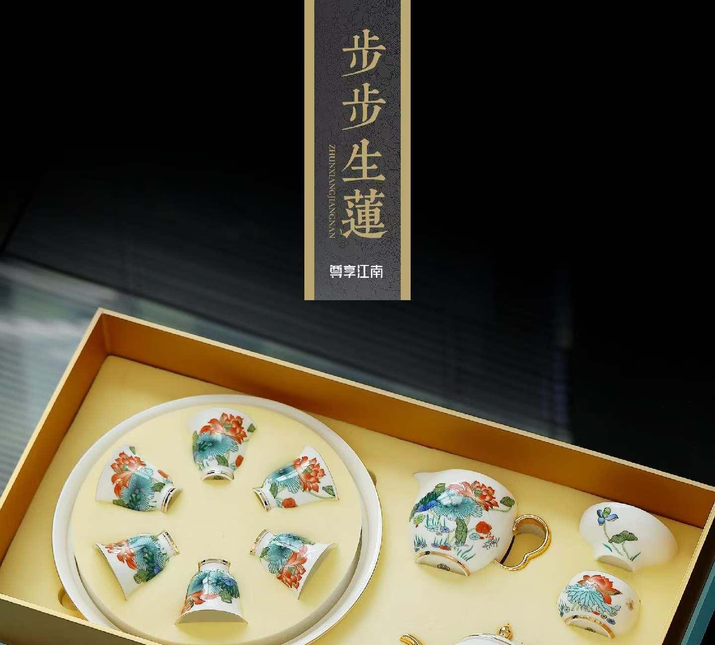 尾桥下窑尊享江南系列带茶盘陶瓷功夫茶具套装商务会议新年伴手礼