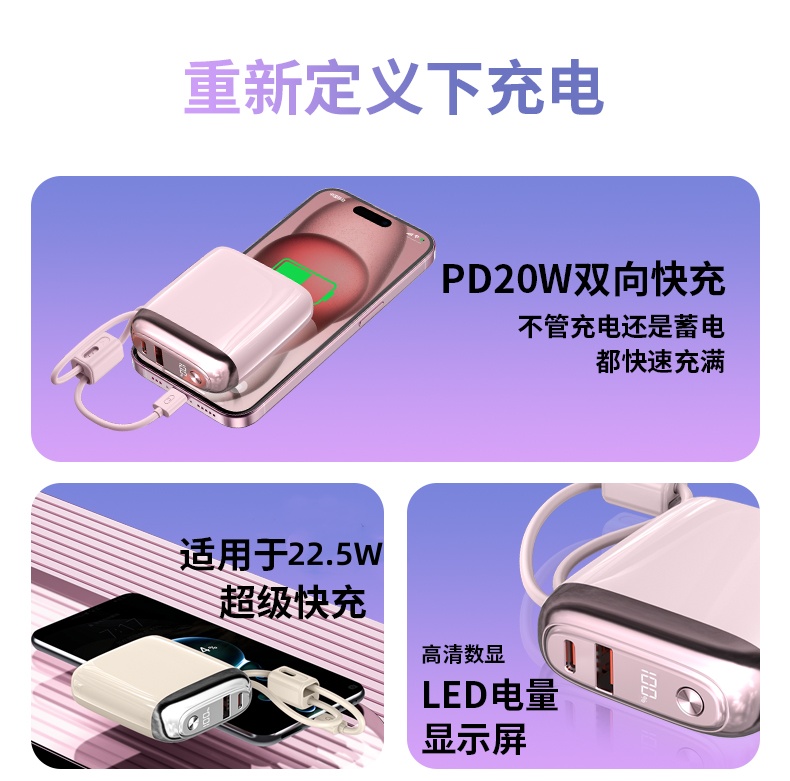 汐屹R59P方糖自带线快充移动电源