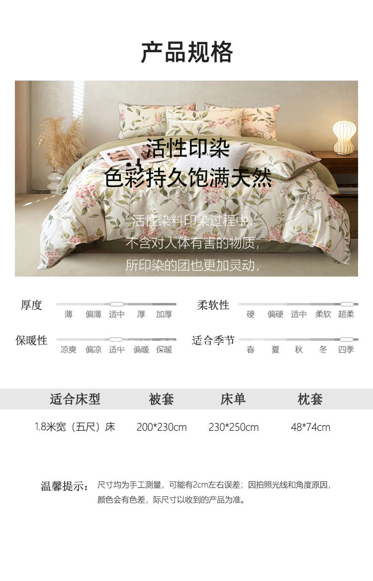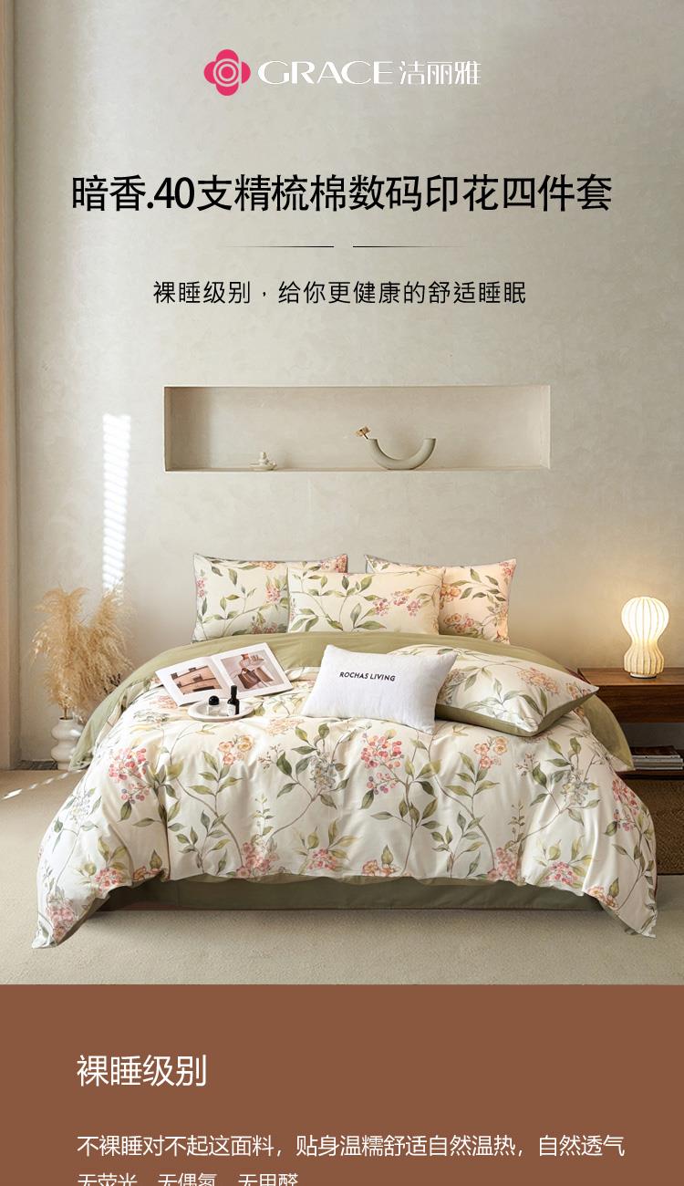 洁丽雅(Grace)暗香.40支精梳棉数码印花四件套