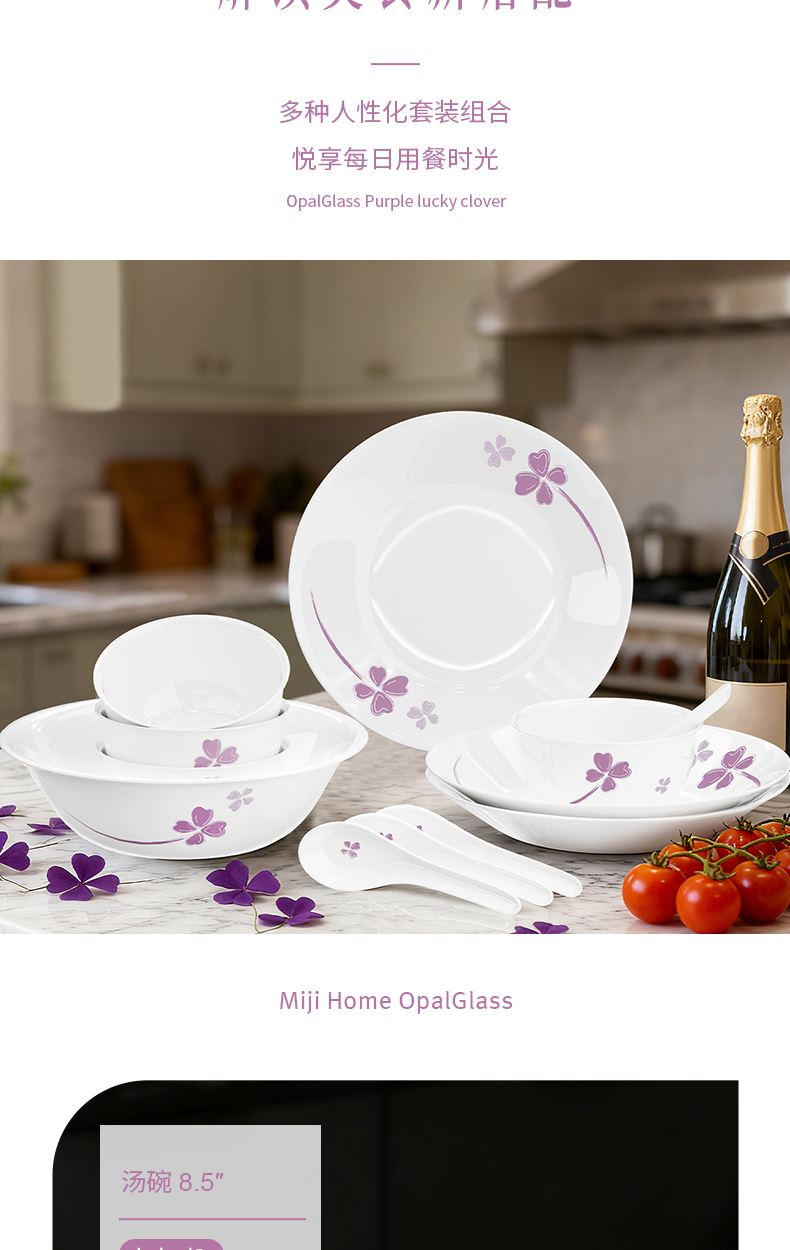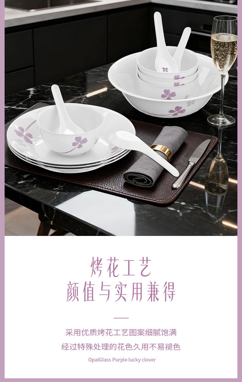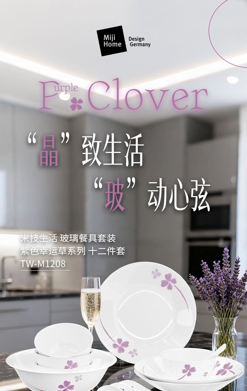 米技生活玻璃餐具套装紫色幸运草系列(十二件套)