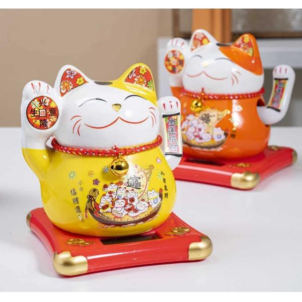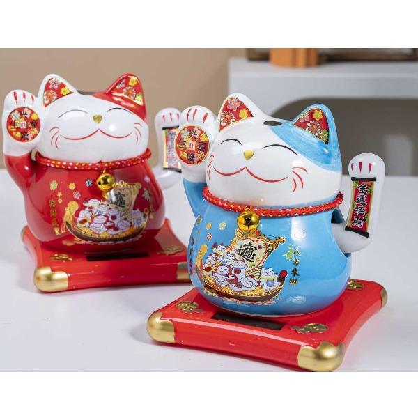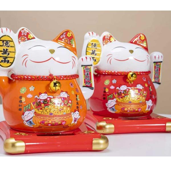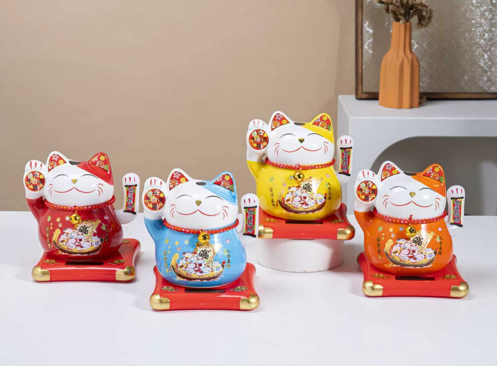 太阳能招财猫来啦!色釉工艺打造出缤纷炫彩的外观,红、黄、蓝等配色明艳喜庆,陶瓷质感细腻光滑,摆在哪里都亮眼~太阳能驱动自动摇手,不用电池也能持续招福,省去频繁换电的麻烦,懒人也能轻松拥有好财运!
