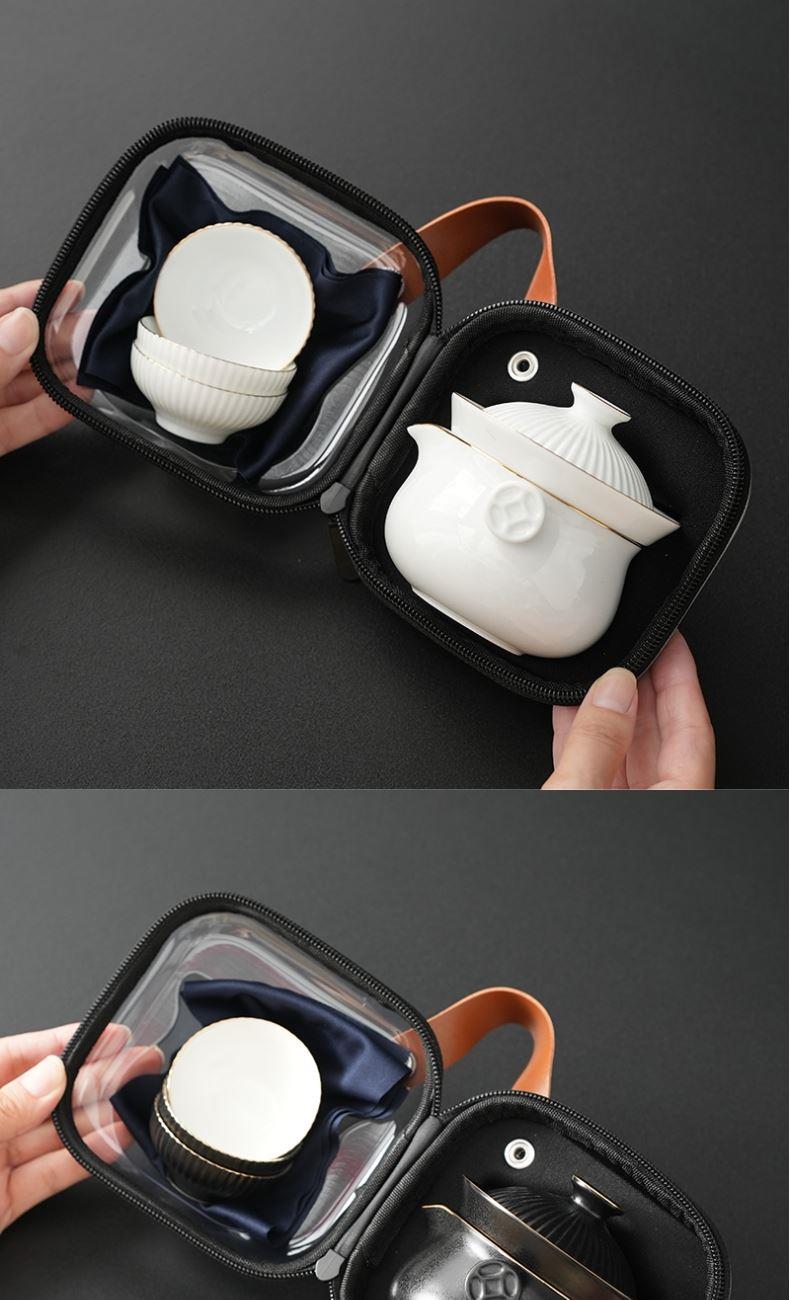 包装规格:10.8*10.8*14.8cm 定制:产品包装均可定制logo 组件:一壶三杯+旅行包 材质:高白瓷 颜色:黑/白