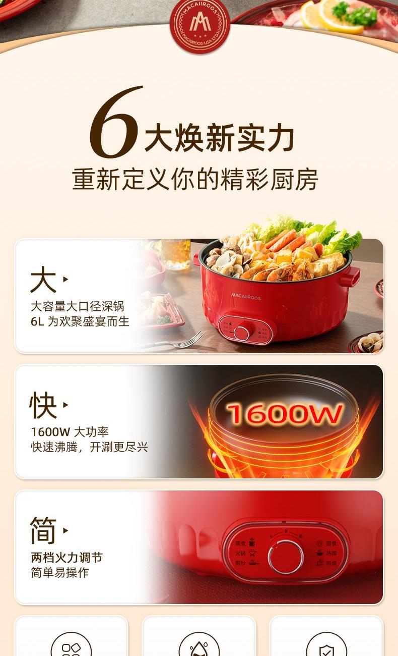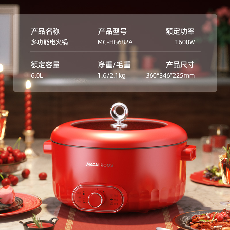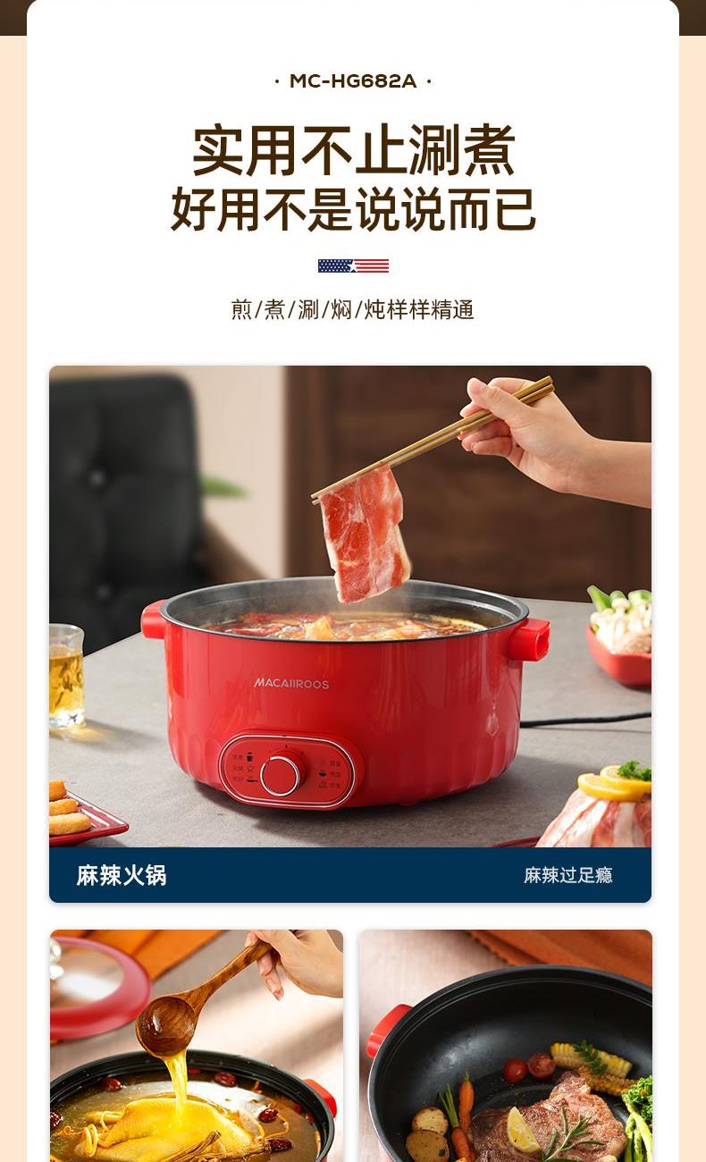 美国迈卡罗多功能电火锅MC-HG682A