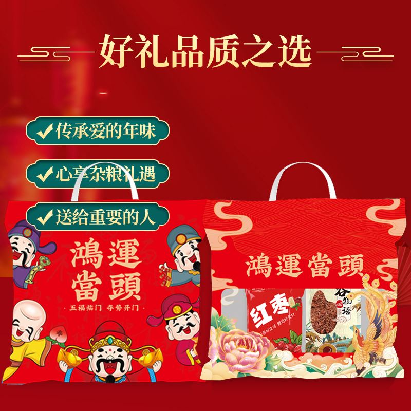 山野源粮鸿运当头杂粮组合手提袋红米红枣元气粥送礼伴手礼