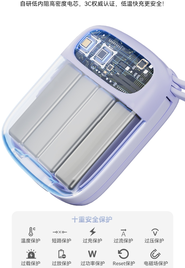 符合移动电源新国标标准,94V0级防火外壳,登机安全无忧。