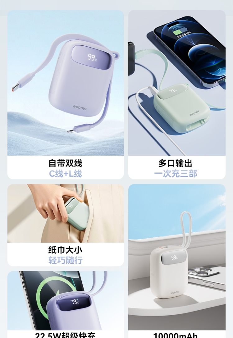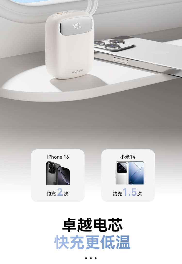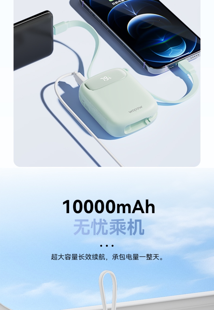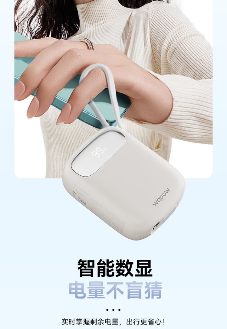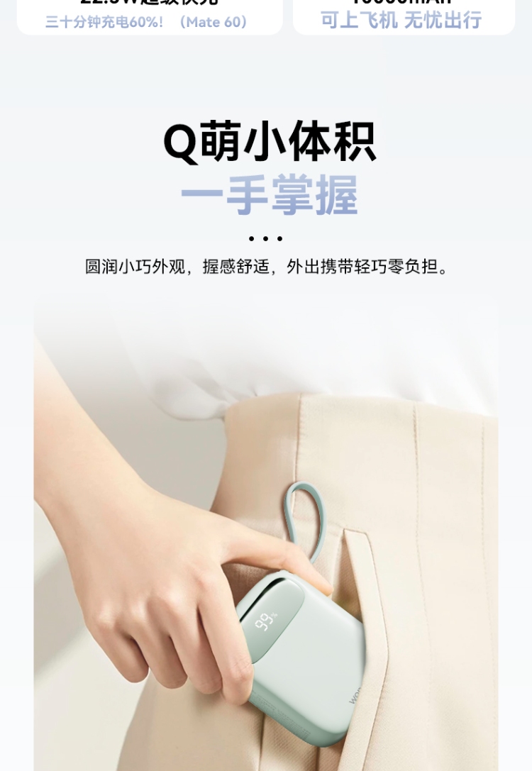 10000mAh超mini,圆润手感,只手可握,轻巧便携。