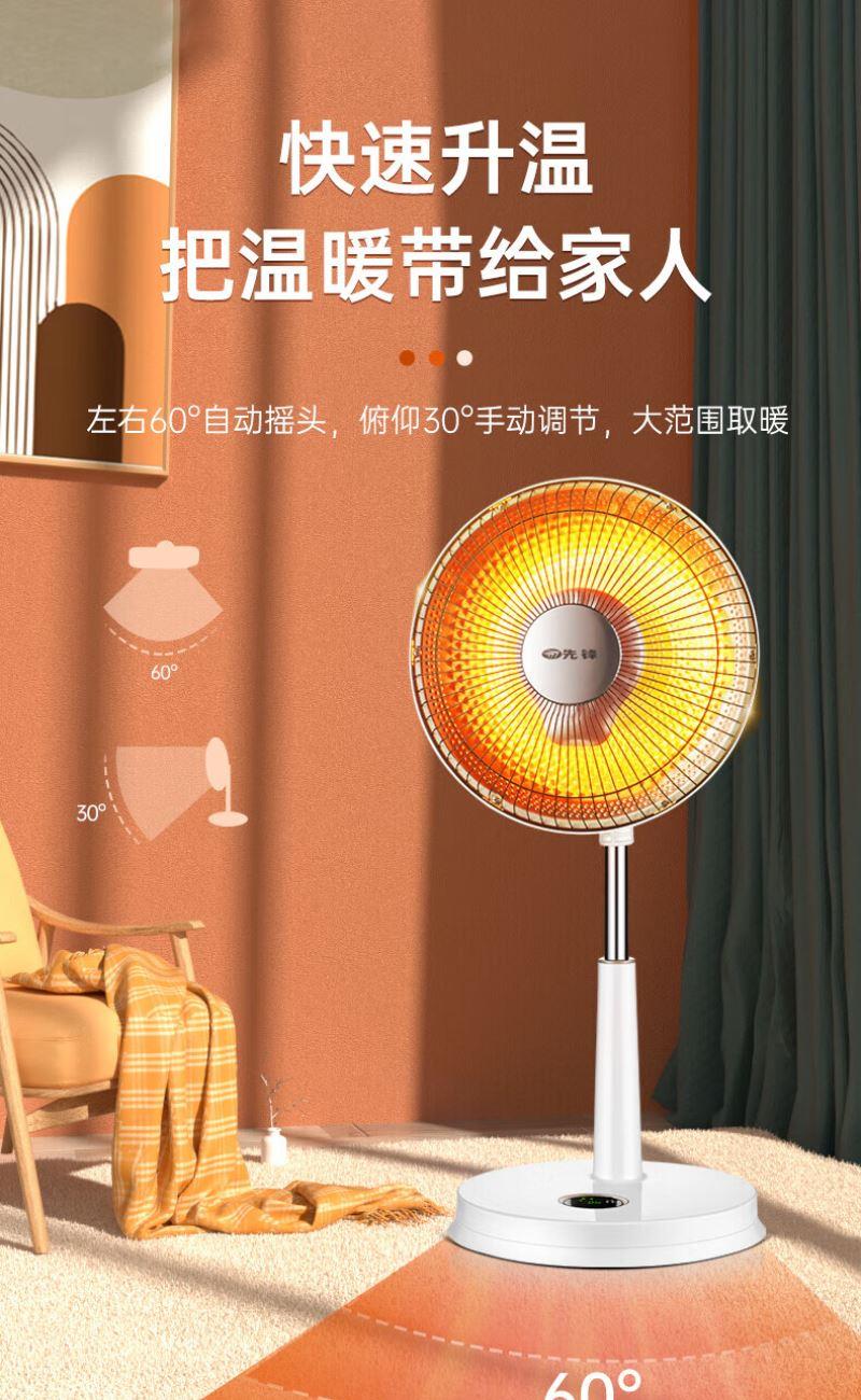 功能参数:支持摇头功能,具备倾倒断电保护功能,适用面积为 5-10 平方米。