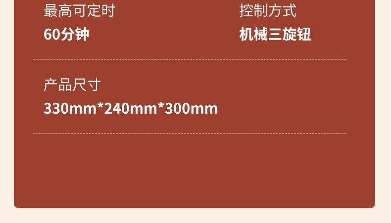 ・旋钮式操作,时间、温度、功能一键选择,老人也能轻松上手
