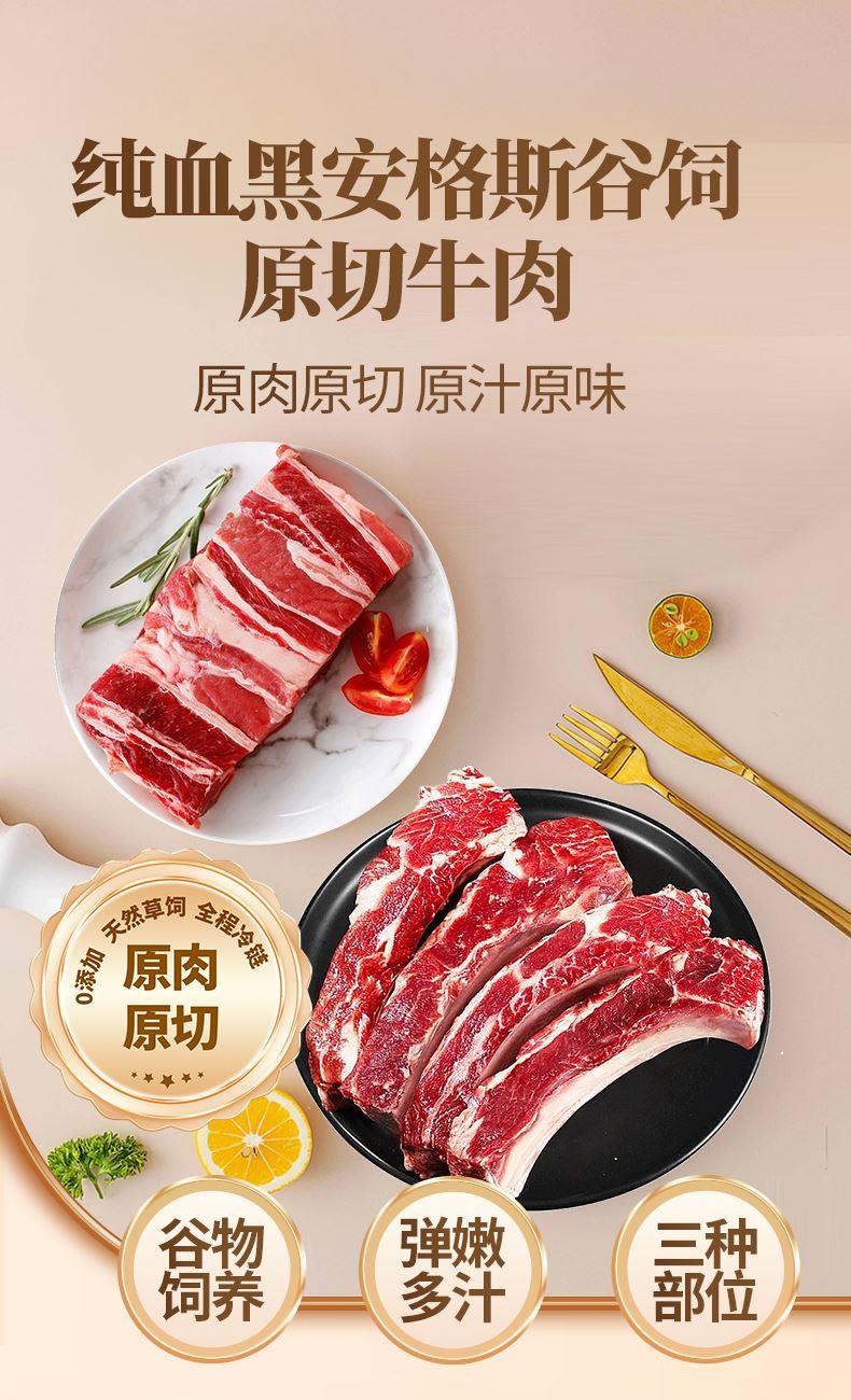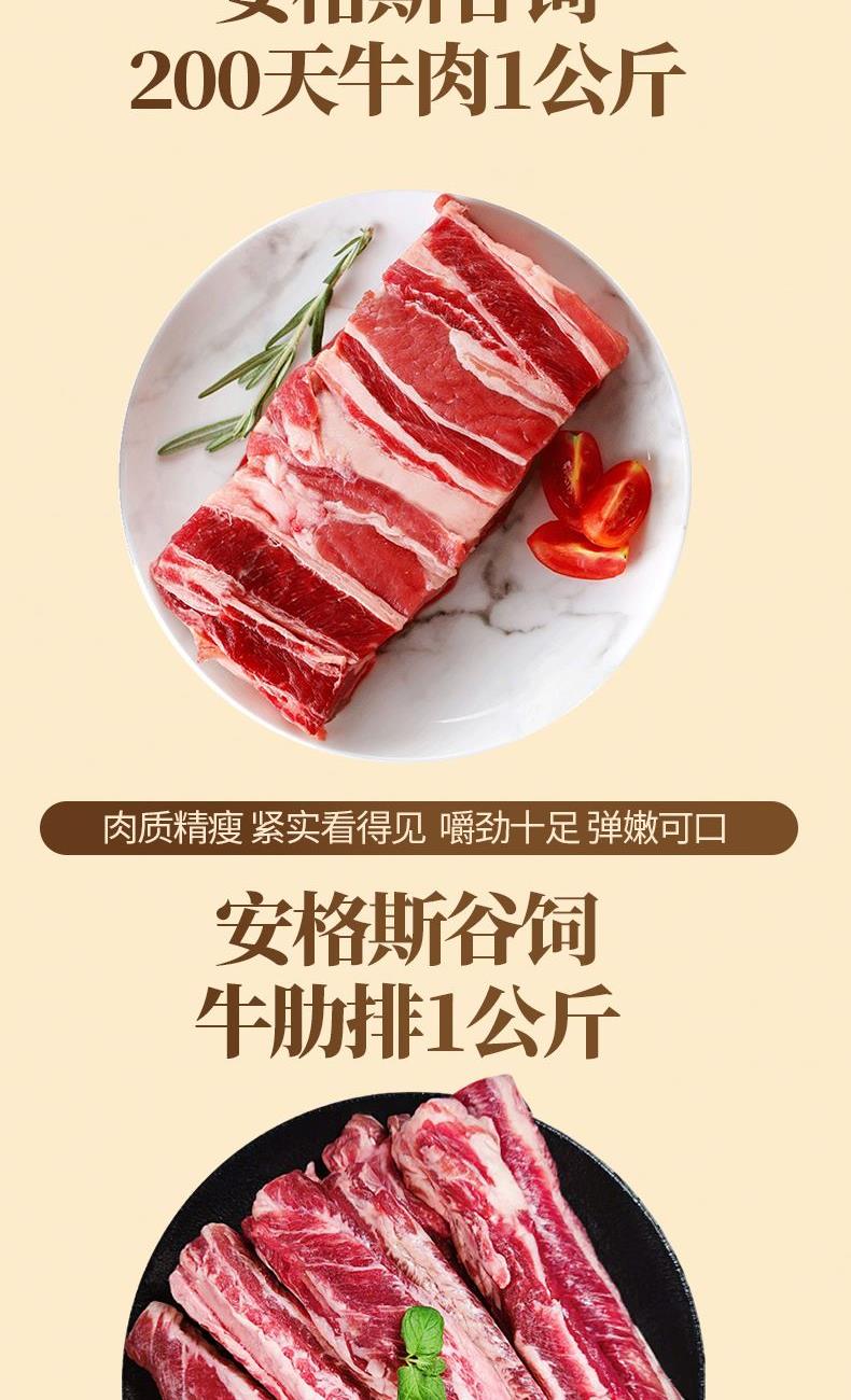 澳洲谷饲安格斯牛肋排1000g*1 安格斯谷饲200天牛肉1000g*1