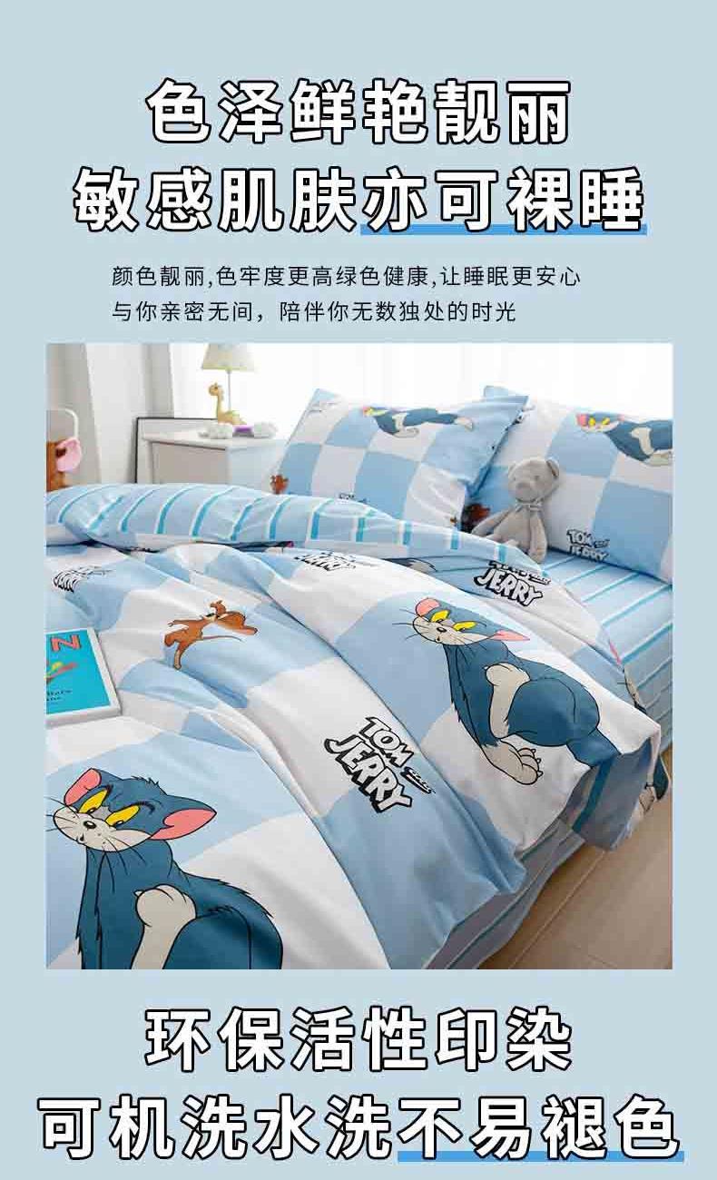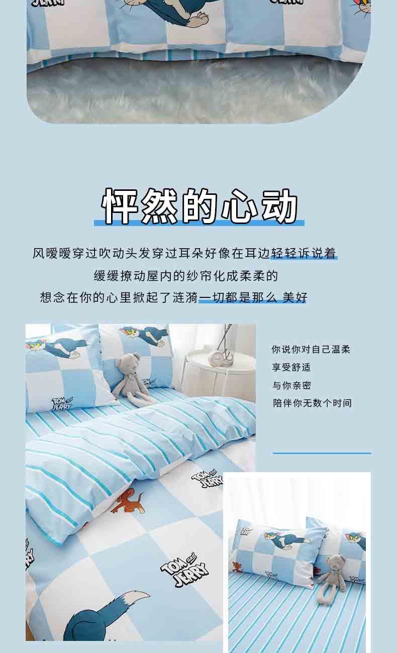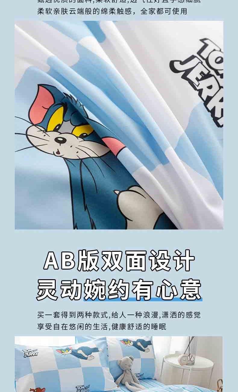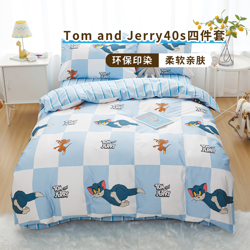 TomandJerry纯棉四件套-蓝白方格轻奢床上用品送礼