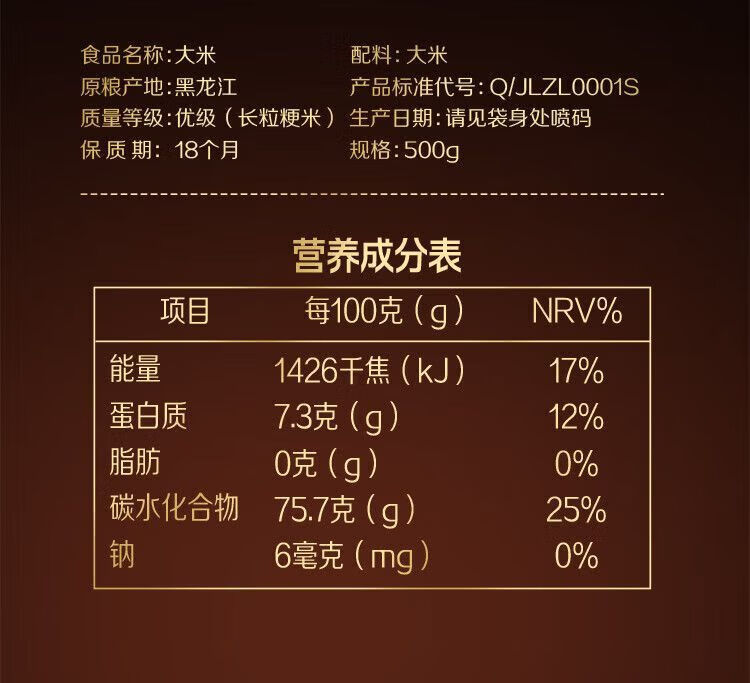 福临门自然香黑龙江长粒香米500g*1袋