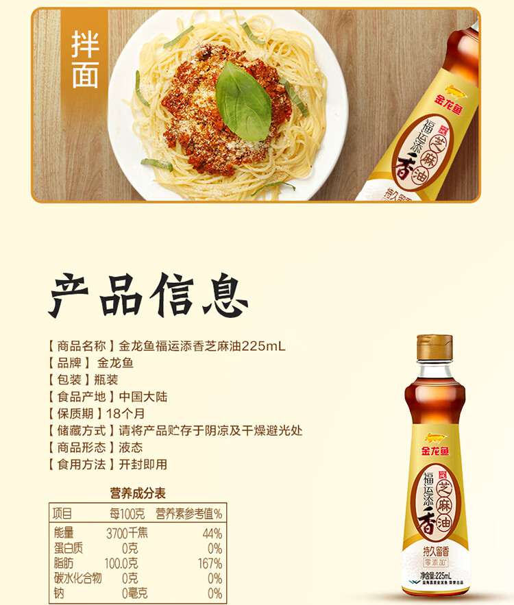 金龙鱼芝麻油225ml*1瓶