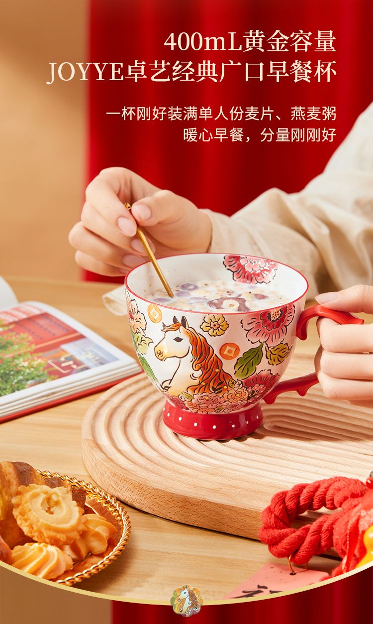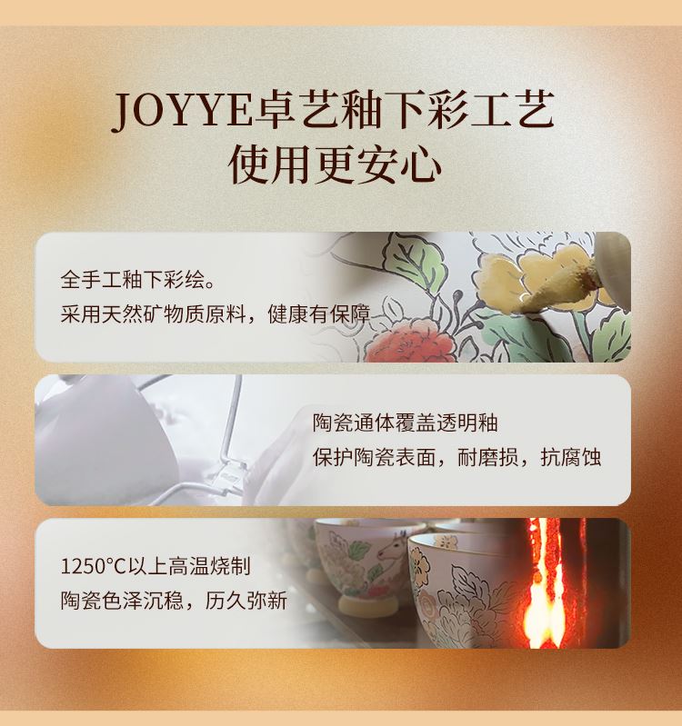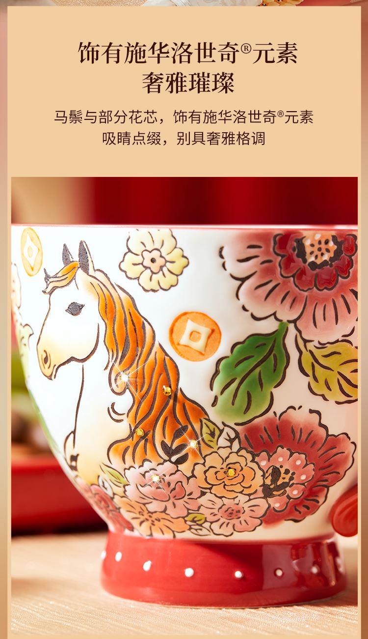 1.全手工釉下彩绘,绘出灵动鲜活的瑞马繁花,吉祥寓意和手绘美感融合。