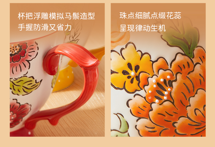4.杯把浮雕模拟马鬃造型,设计别致又防滑。