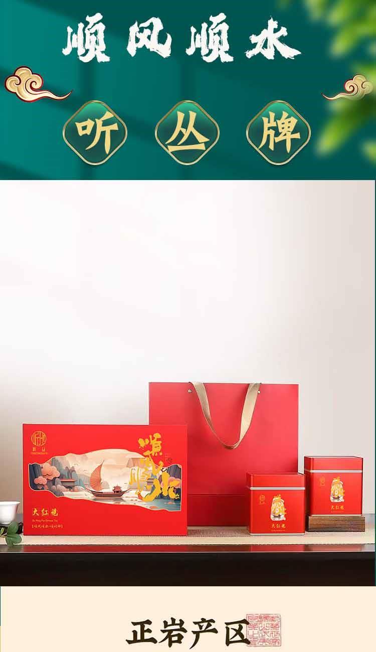 【茶名】:大红袍 【型号】:MY240822 【重量】:250g 【配件】:铁罐+礼盒+手提袋 【口味】:浓香型 【产地】:福建·武夷山 外形:紧结、壮实、稍扭曲。 色泽:带宝色或油润;整碎:匀整。 香气:锐、浓长或幽、清远; 滋味:岩韵明显,固味甘爽,杯底有香气。 汤色:清澈、艳丽、呈深橙黄色。