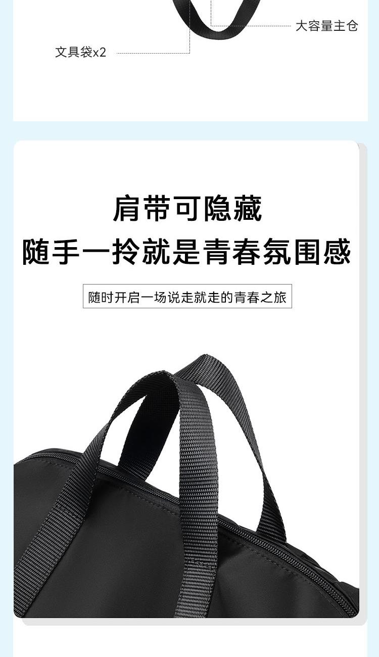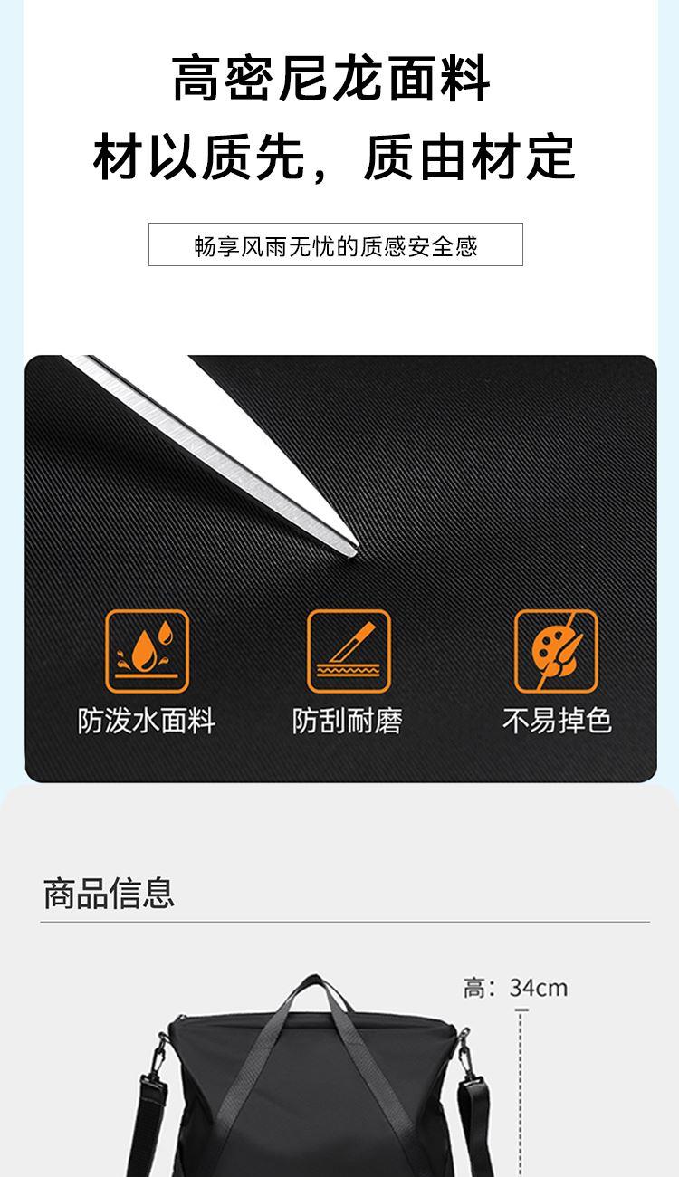 素简有型松弛有度,随心百搭一包双用 轻盈耐磨防泼水面料,安全质感无负担 可背可提灵活切换,斜跨飒爽手提时尚 大容量多仓储设计,分区归置整洁从容 15.6吋笔记本电脑仓,休闲商旅轻松驾驭 托底设计站立不垮,金属扣肩带可拆可调