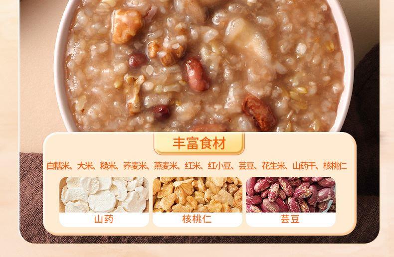 产品信息: ①规格:2.17kg ②内配:绿豆500g*2,黄冰糖500g,鲜食黄糯玉米220g,十糙米莲子粥150g,红豆薏米粥料100g,山药核桃粥料100g*2 ③贮存条件:常温阴凉避光处保存,冷藏(0°C- 4°C)更佳 ④特点:种类丰富一次备齐、相互搭配,简单易做、洗净加水放入电饭煲,一键轻松搞定