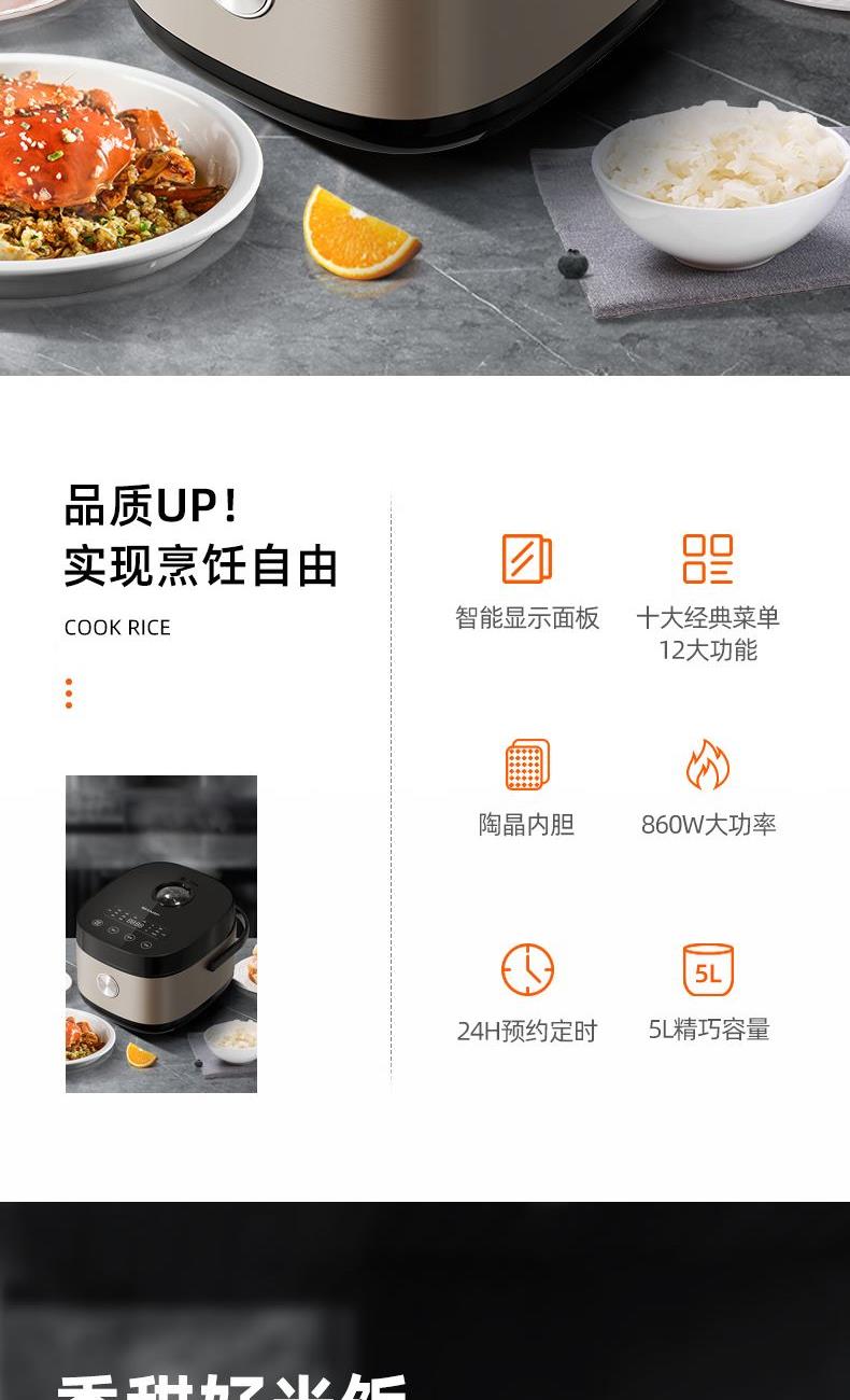 额定功率:860W 产品容量:5L
