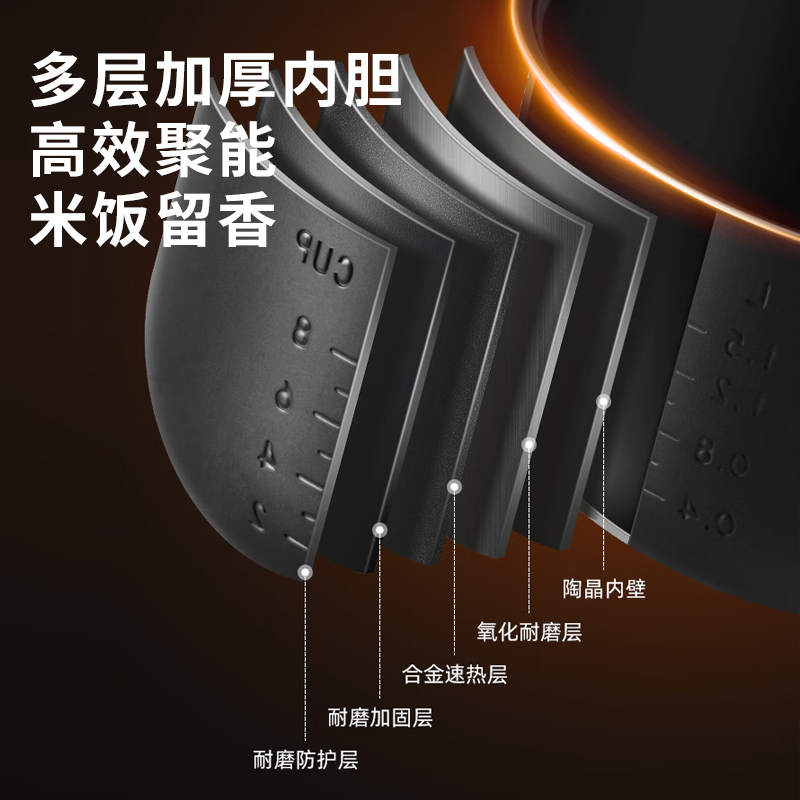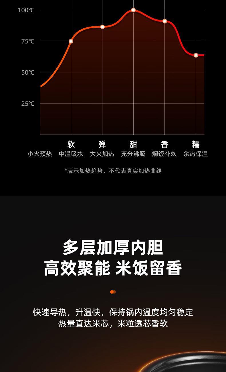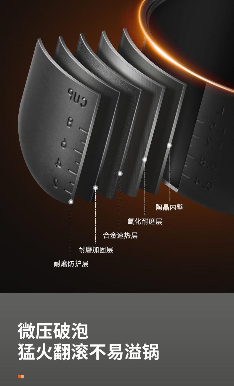 涡纹釜5层工艺内胆设计,食品级大金不粘涂层,强劲耐热耐腐蚀;