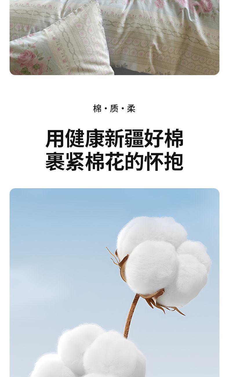 材 质:棉 规 格:被套:200*230cm 床单:230*245cm 枕套:48*74cm*2 产品介绍:纯棉面料,仿活性印染,舒适,透气性好,天然材质,贴肤更健康。