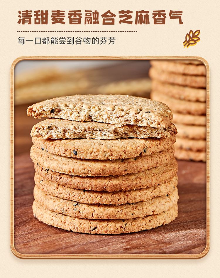 盼盼黑芝麻粗粮饼干,是一款融合了经典粗粮与现代烘焙工艺的健康零食。 它严选黑芝麻与多种谷物,带来浓郁的谷物本香与芝麻醇香,口感酥脆可口。 产品富含膳食纤维,既可作快速充饥的早餐或下午茶,也能满足日常的营养补充需求。 独立小包装设计,方便携带与分享。这是一款兼顾美味、营养与便捷的日常饼干之选。