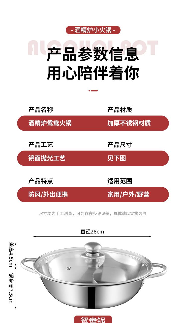 产品规格:28cm鸳鸯锅➕酒精炉➕汤勺➕漏勺 产品材质:201不锈钢 彩盒尺寸:52.5*10*28.5CM 外箱尺寸:64*54*59 cm 福禄双喜,汤勺捞福,漏勺添财,红红火火团团圆圆, 火锅二味分隔设计满足不同口味需求,酒精炉加热保持温度稳定 搭配不锈钢汤勺漏勺,冬天涮火锅实用又美味~ 超大礼盒包装,客情维护,促销储值礼品,低成本高价值。