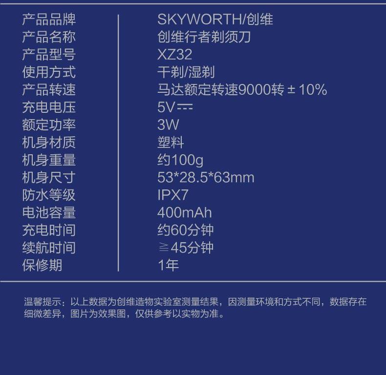 创维SKYWORTH行者剃须刀镜湖蓝XZ32