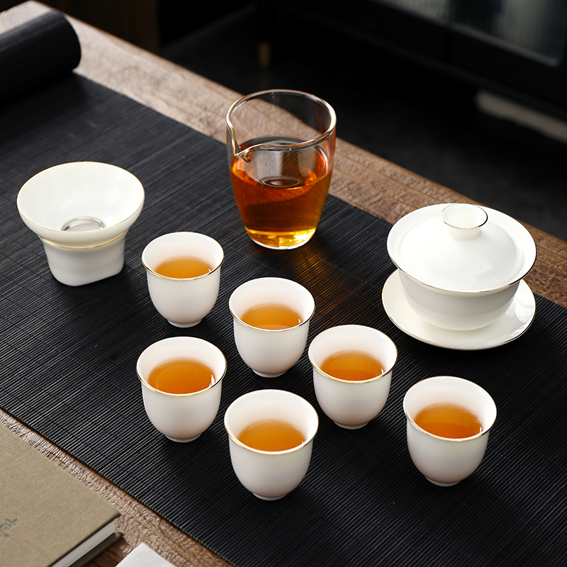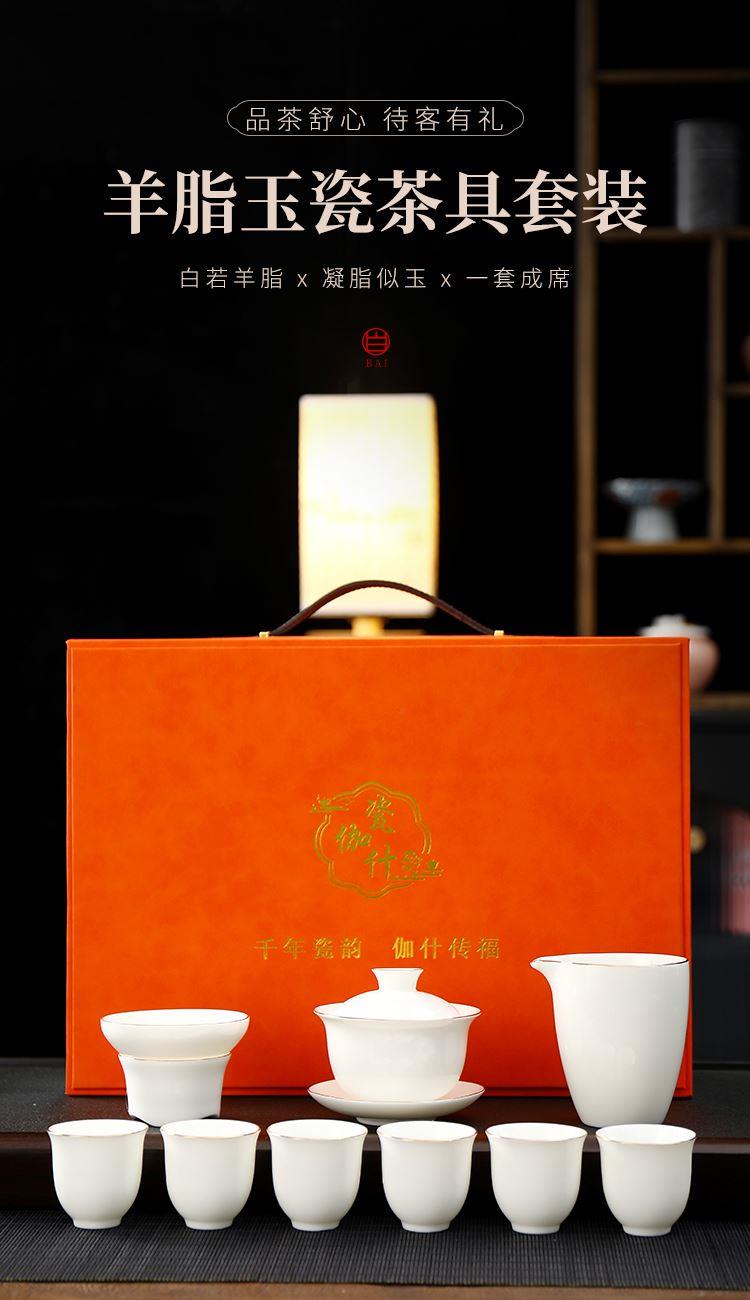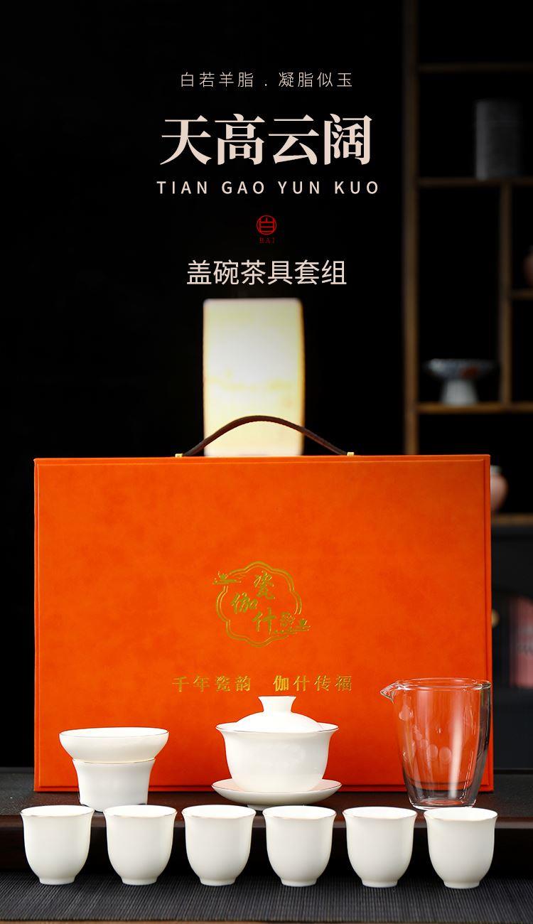 瓷伽什天高云阔羊脂玉描金套组