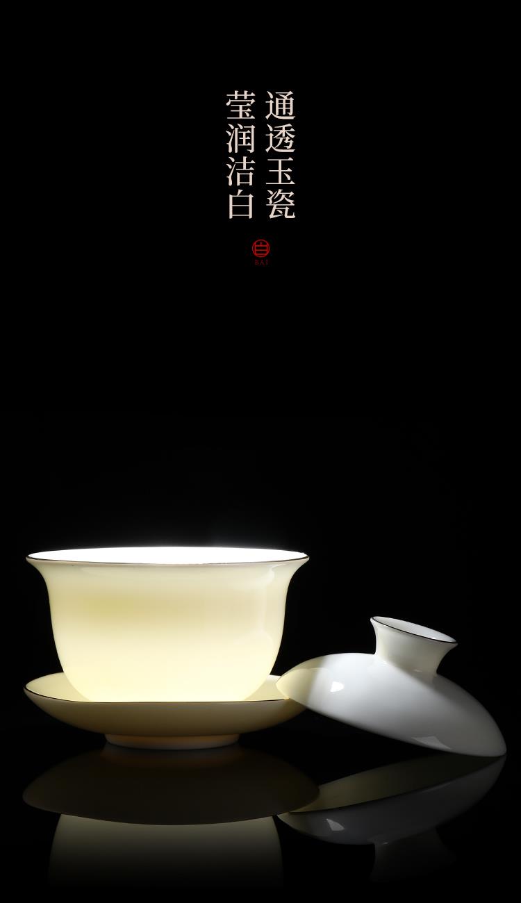 盖碗1:宽9.5cm*高8.2cm 130ml 茶海1:宽8cm*高9cm 230ml 茶杯:6宽5cm*高4.8cm 45ml 茶漏1:宽8cm*高5.6cm 礼盒1:36cm*26.5cm*12cm 原矿瓷土,高温烧制,多道工序人工打磨专注精品。 羊脂玉瓷,细腻洁白,温润如玉。 器型端庄大气,口沿描金,线条流畅,体态饱满精致。
